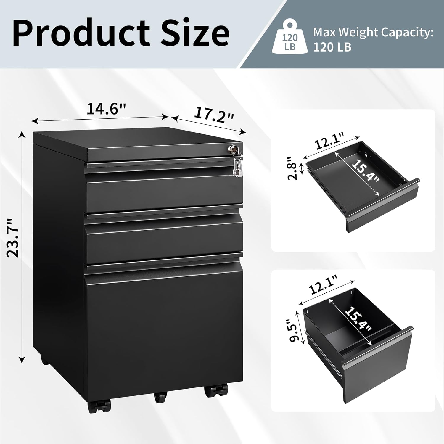 - Durable Steel Construction: Crafted from high-quality steel, this filing cabinet with lock ensures excellent durability and robustness. Its construction is designed to withstand the challenges of daily use, providing long-term reliability. Whether you have a small or large filing need, this rolling file cabinet is built to last and can withstand the demands of your busy office environment.