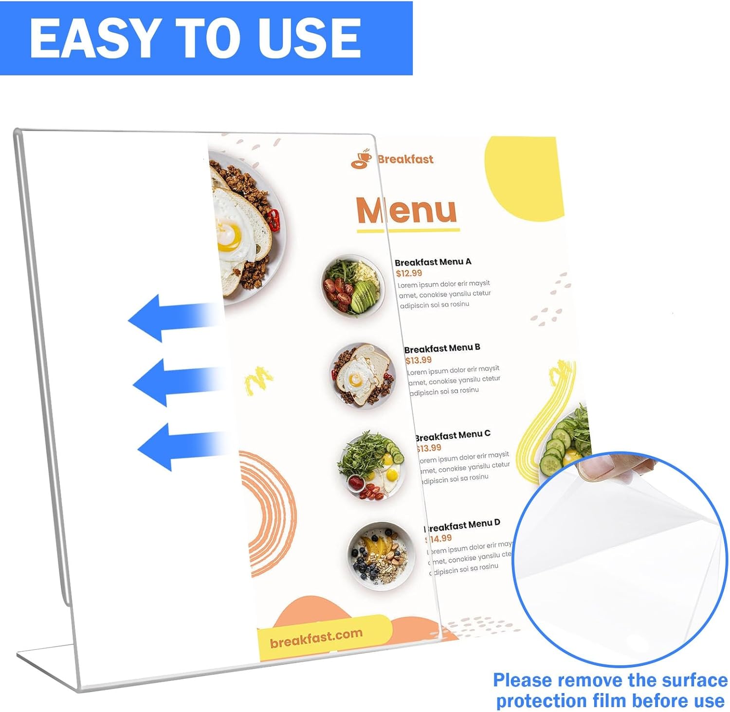 - Easy to Install: The plastic sign holder 8.5 x 11 standing is a one-piece design, no need to assemble it, just insert the picture or poster directly into the sign holder, which is very simple and saves you precious time