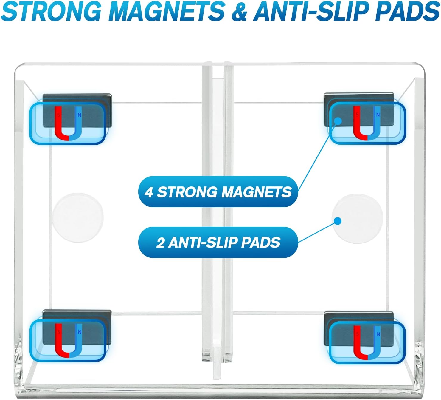 - ăUnrivaled Magnetic AdhesionăOur magnetic marker holder is equipped with 2 anti-slip pads and 4 strong magnets that guarantee a secure attachment to any metal surface, ensuring it stays exactly where you need it â no sliding, no falling. Please note that our acrylic clear magnetic dry erase marker holder does not apply to glass or plastic surfaces.