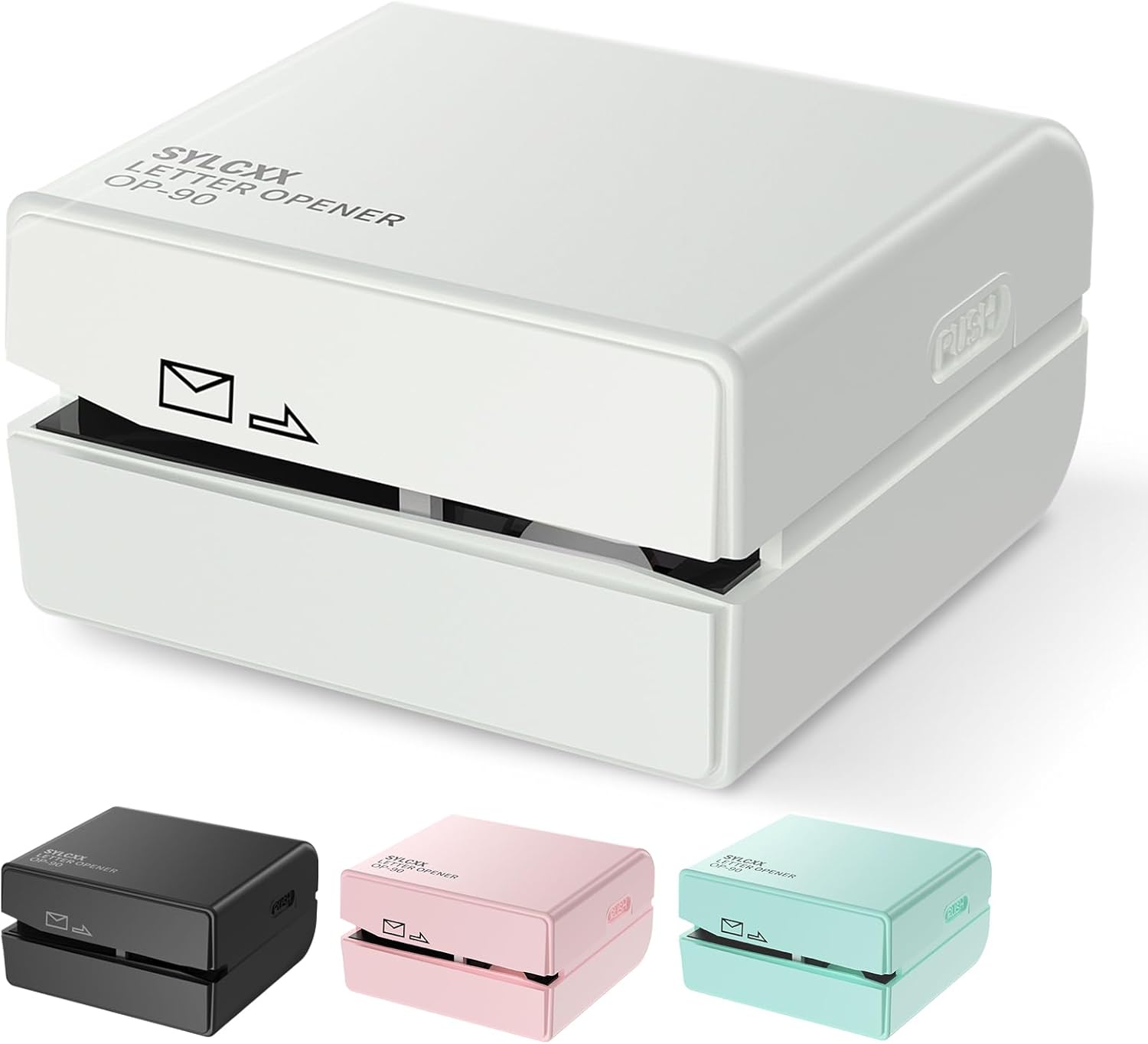 Battery Operated Electric Letter Opener - Letter Openers Envelope Slitter, Envelope Opener, Mail Opener, Universal Envelope Efficient Letter Opener Tool for Office, Home (White)