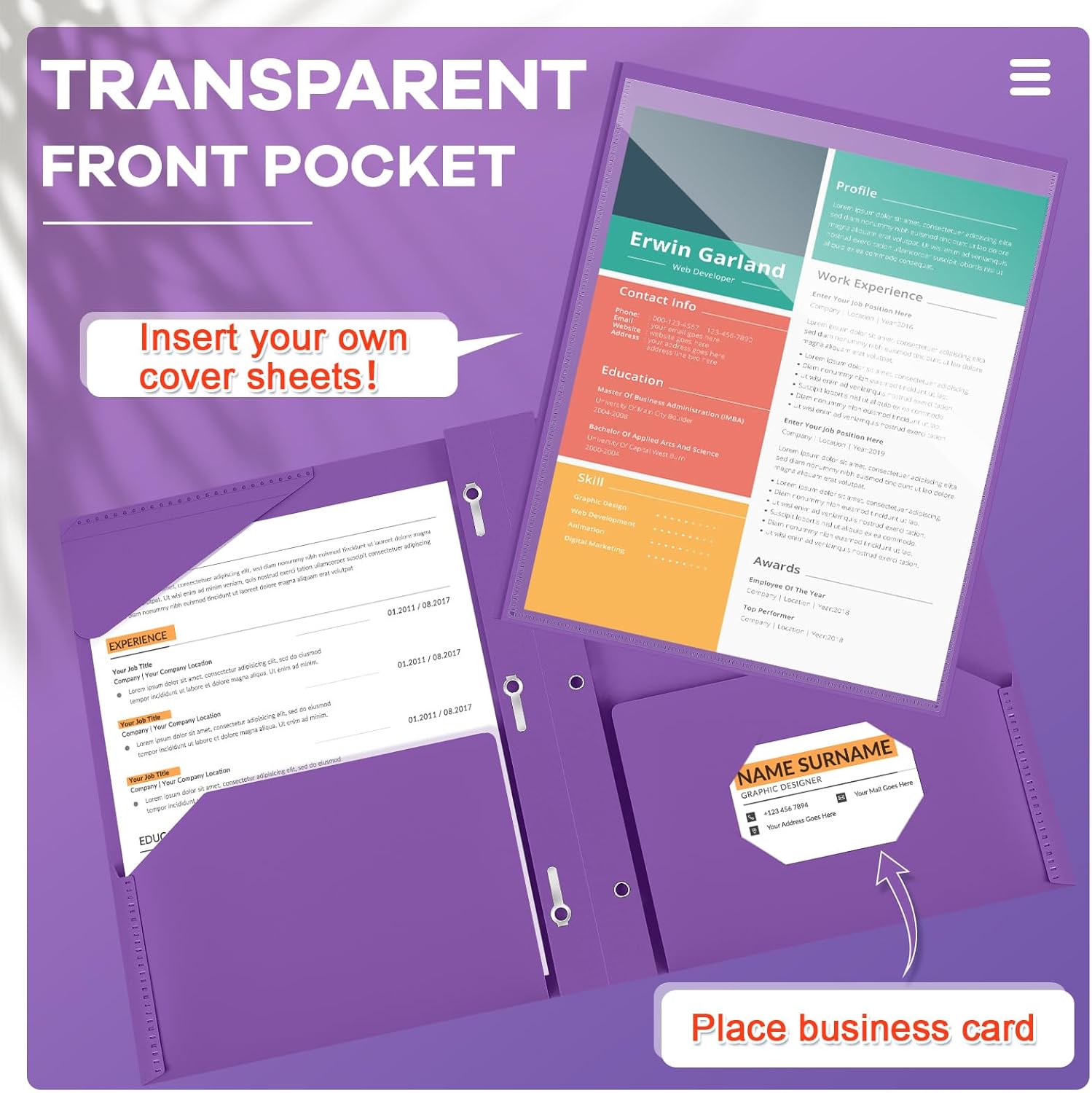 - Vibrant purple Color: our plastic folder with prongs will not only make your files stand out, but also add a touch of elegance to your documents and presentations; The fresh purple color also helps you easily distinguish your important files from the pile of papers on your desk