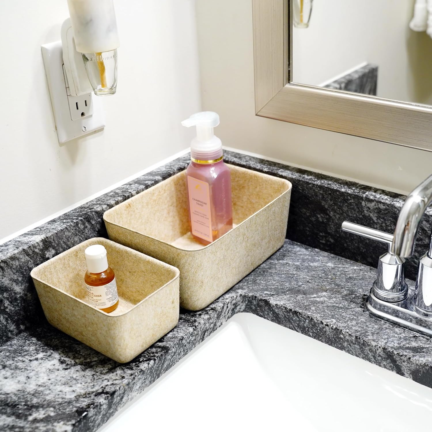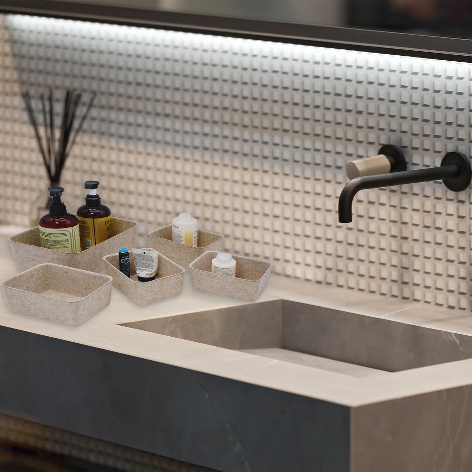 Welaxy 5-piece Drawer organizers dividers storage bins deep storage bin aesthetic wabi-sabi Scandinavian-chic storage bin hygge sleek minimalist lifestyle gifts (Oatmeal)