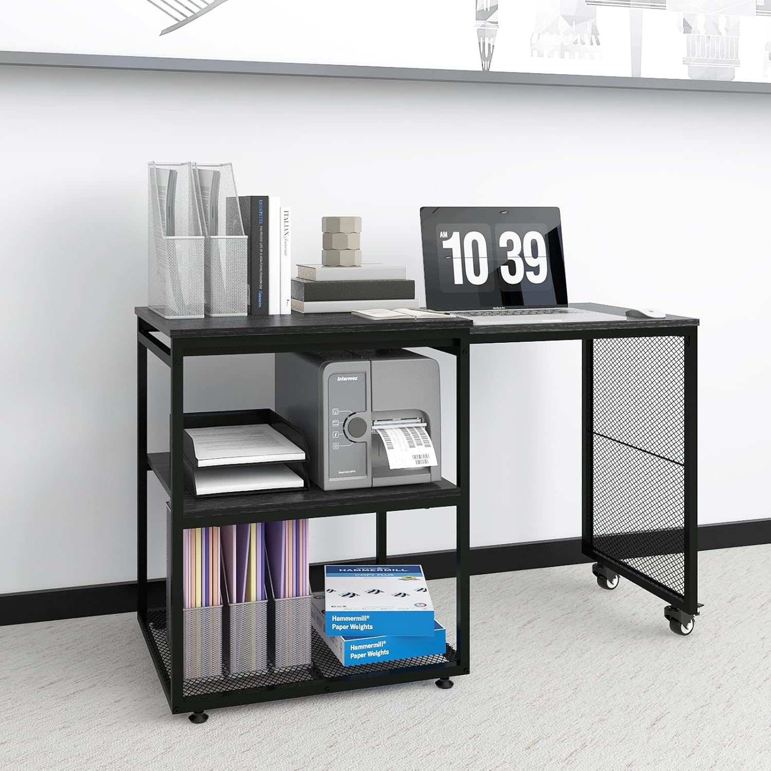 - 【Multifunctional Table】The home office organization table is not only perfect used as home office desk, large printer stand with storage shelf. It can also be used as home hobby craft table, wooden drawing and painting desk for kids, it can even be a kitchen island or mini bar when extend the table.