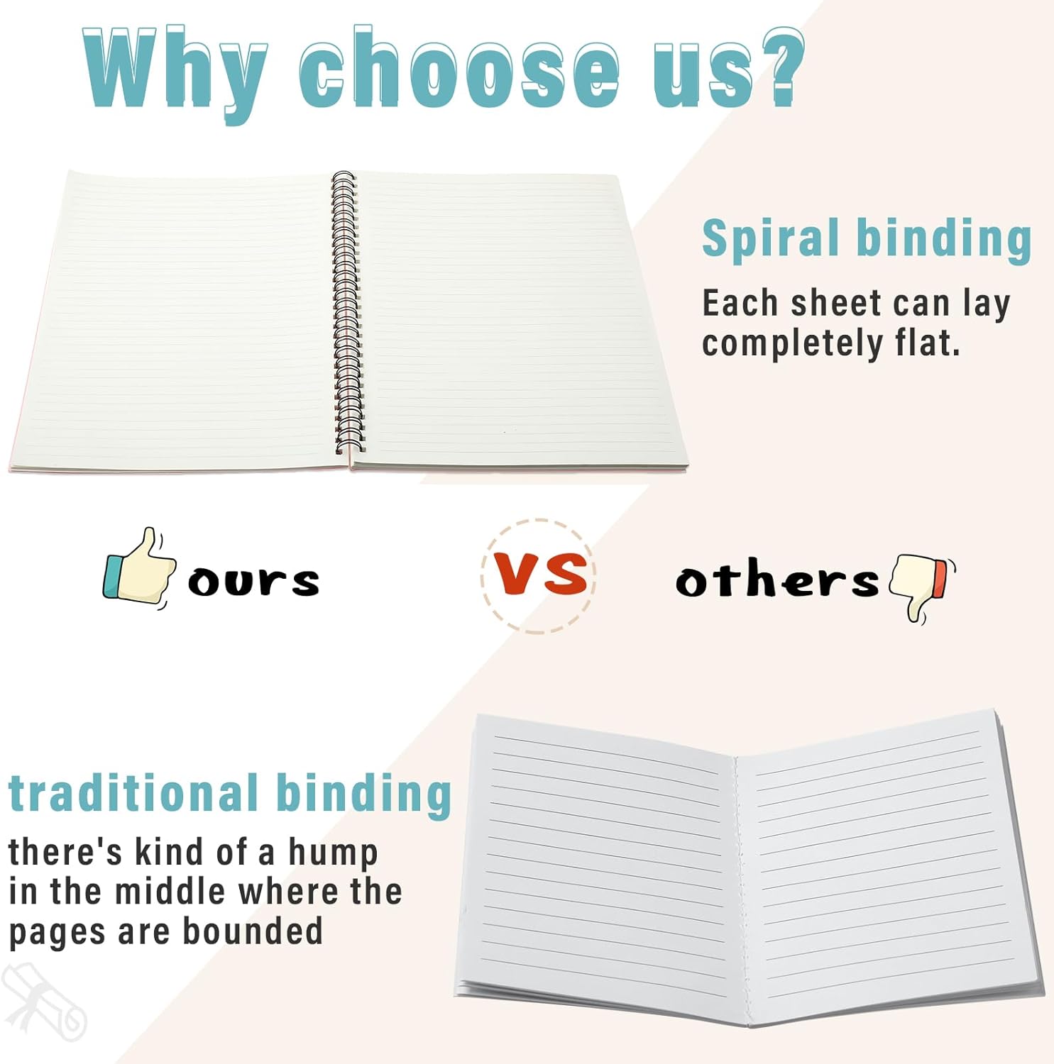 - Smooth to Write: each spiral journal notebook has 60 sheets (120 pages), and each page adopts quality 80gsm white paper, smooth and easy to write, preventing ink infiltrating into the next page, and mild colors can avoid eye fatigue and bring comfortable experience