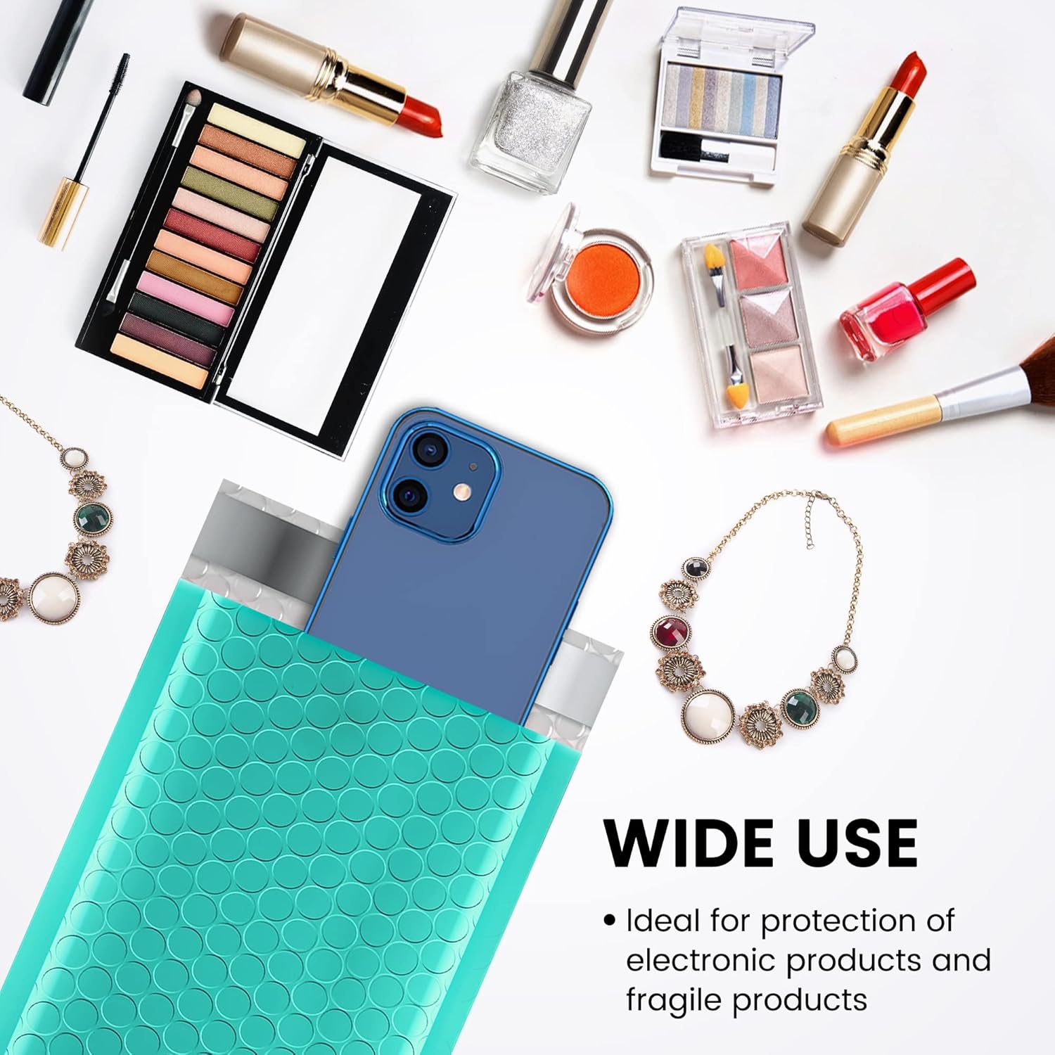 - Perfect Size Teal #000 Bubble Mailers: The poly bubble mailers padded outer size is 4x8 inch, while the inner size is 4x7 inch. It is very suitable for transporting jewelry, makeup, cards, phone case, Lips, photos,handcraft and more. Great for small business packing,shipping gifts cushioning mailer.