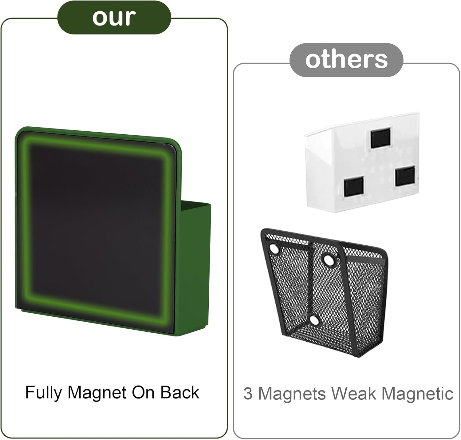 - Upgraded Magnetic Pen Holder:Magnetic marker holder adopts adjustable divider design,There are a movable divider and 3 slots inside. We come with 1 Piece two generous compartments storage holder and 1 Pieces small size holders,you can choose your storage Organizer of different sizes as you like.