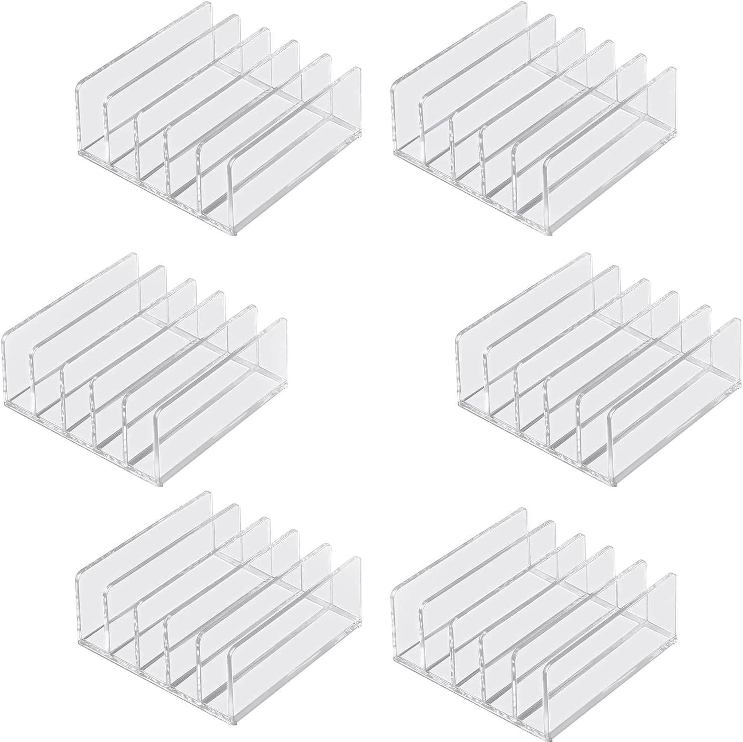 6Pack Acrylic Mail Organizer for Sorting Mail, Business Card, 5Slot Acrylic Mail Sorter for Desktop Shelf, Clear Bill Money Divider for Cash Envelope, Desk Organizer, Home and Office Use