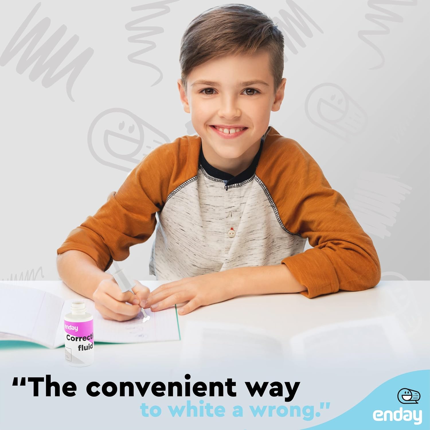Enday White Out Liquid Correction Fluid, 7 fl. Oz. / 20 ml Foam Wand Applicator Quick Dry Liquid Paper Whiteout, Multi-Purpose Smooth Wite Out Corrector for Office, and Home, 4 Pack