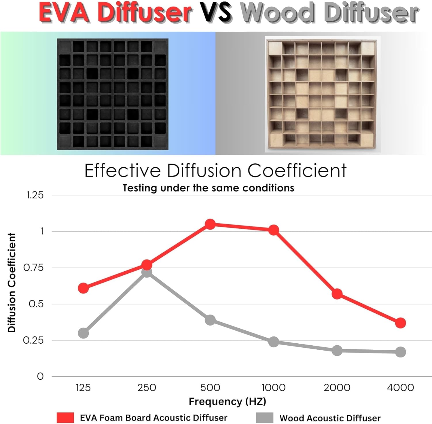 - Complete Acoustic Solution: The EVA Foam board Acoustic Diffuser offers more than just sound diffusion, it's a comprehensive acoustic treatment for your space. From wall paneling to bass traps, from acoustical reduction to sound deadening, this 4-pack caters to various needs. Bring your audio system to life, whether you're setting up a home theater or a professional recording booth