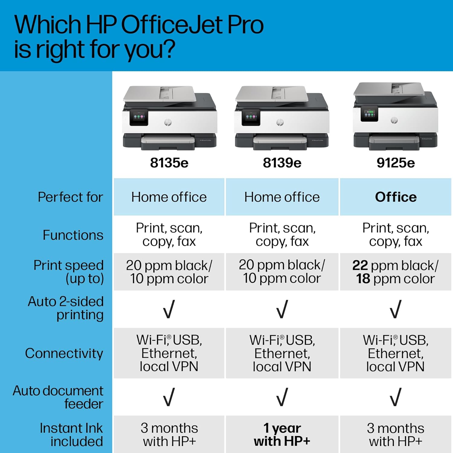HP OfficeJet Pro 8139e Wireless All-in-One Color Inkjet Printer, Print, scan, Copy, fax, ADF, Duplex Printing Best-for-Home Office, 1 Year Instant Ink Trial Included