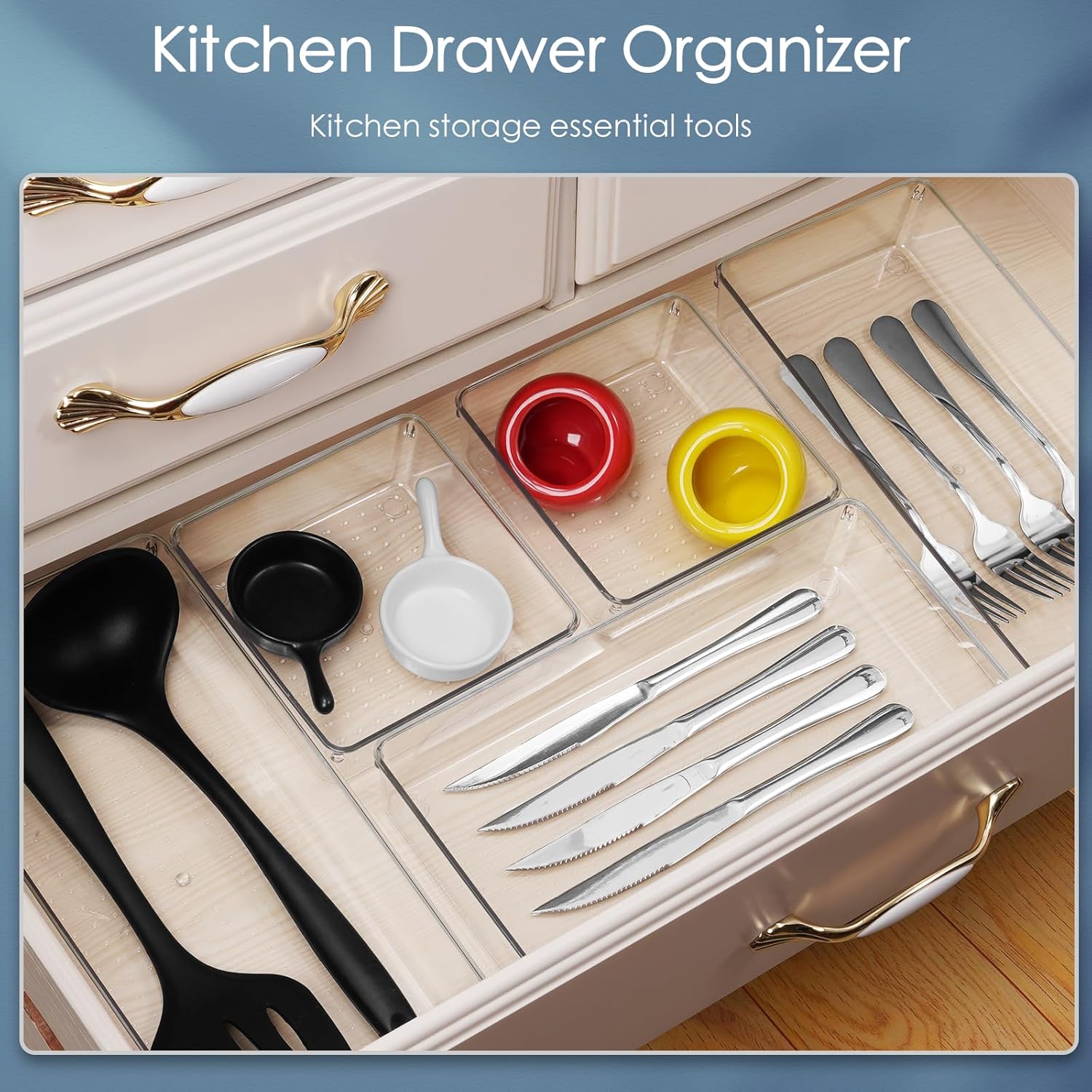 - ăPremium MaterialăMade of high-quality environmental protection material. Clear design, can help you find what you want quickly. Very sturdy, not easy to break. The drawer organizer is easy to clean with water. Safe material can ensure your family and children's health.
