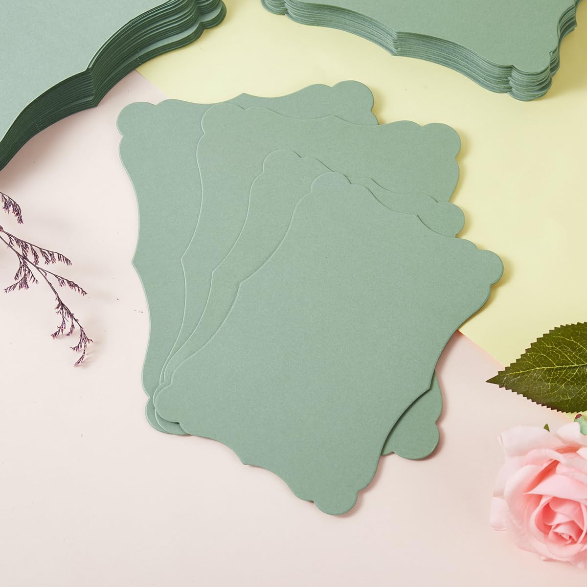 - Package Include: It contains 50 pieces sage-green blank kraft paper cardstock ( 5 x 7 inches).