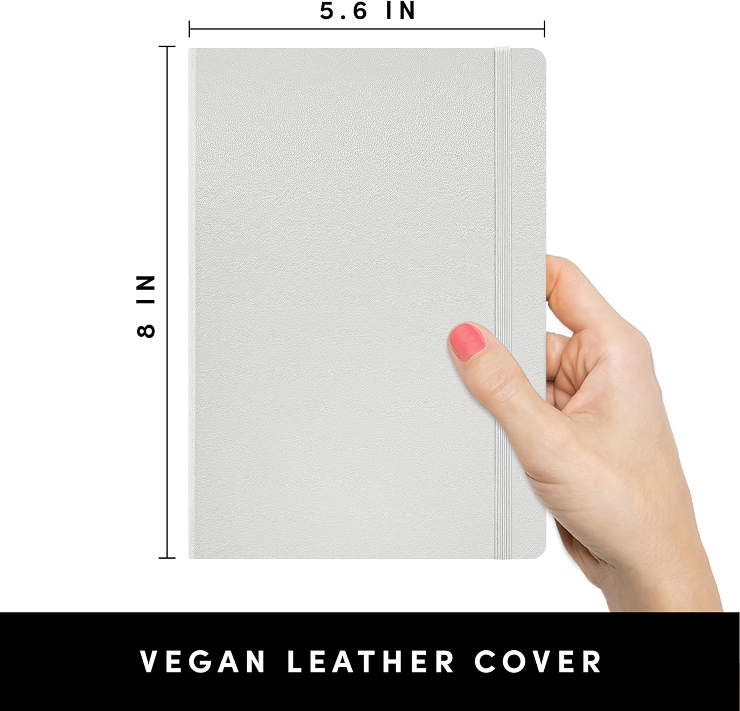 - BEST-SELLING HARDCOVER JOURNAL: This classic 5.6" x 8" vegan leather journal features a durable and water-resistant cover, 160 blank pages, inner expandable pocket, sticker labels, ribbon bookmark & elastic closure band.