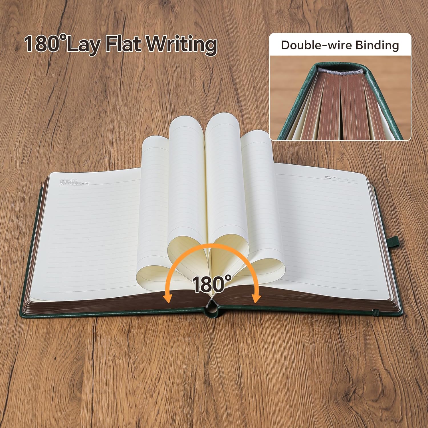 - 360 Pages 100Gsm Thick Lined Journal: Brown edge design with Pen, Easy to carry A5 size (5.9" x 8.5"/159mm x 215mm), 8mm space classic college ruled notebook, support 180° Lay Flat, 2 bookmarks, 1 elastic closure band, 1 inner pockt.