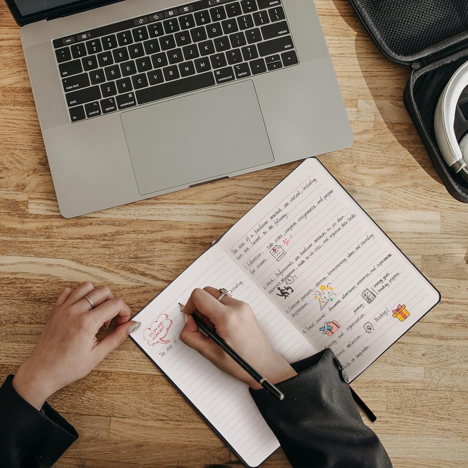 - 【All-in-One Creative Companion】 Elastic closure strap protects pages from spills in your tote. Bulit-in back pocket holds business cards, receipts, or notes, while the silk ribbon markers project tracking. Easy to carry and ready for ideas anywhere, anytime.