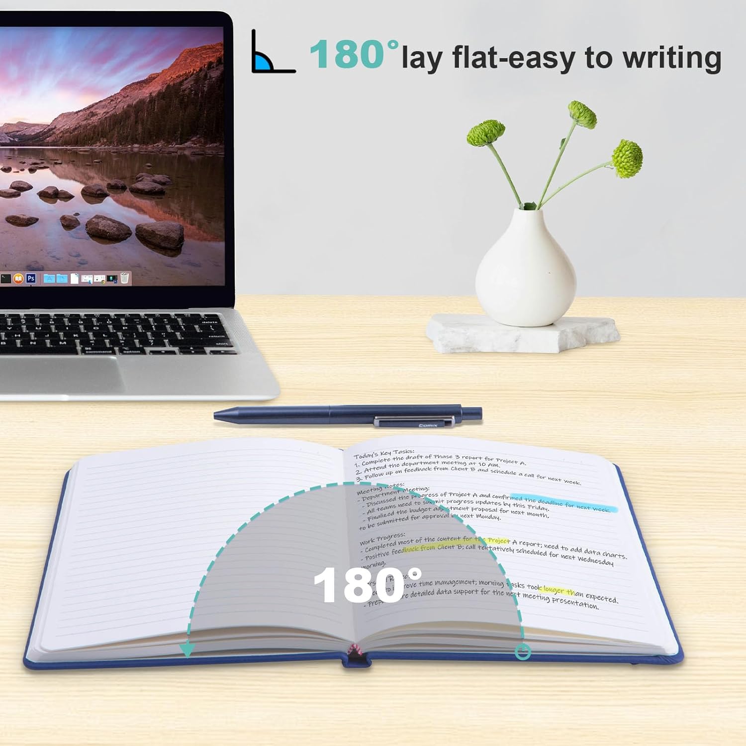 - 【180° Lay-Flat Binding】Lay-flat spine design with reinforced thread-binding ensures seamless writing without mid-page gaps.