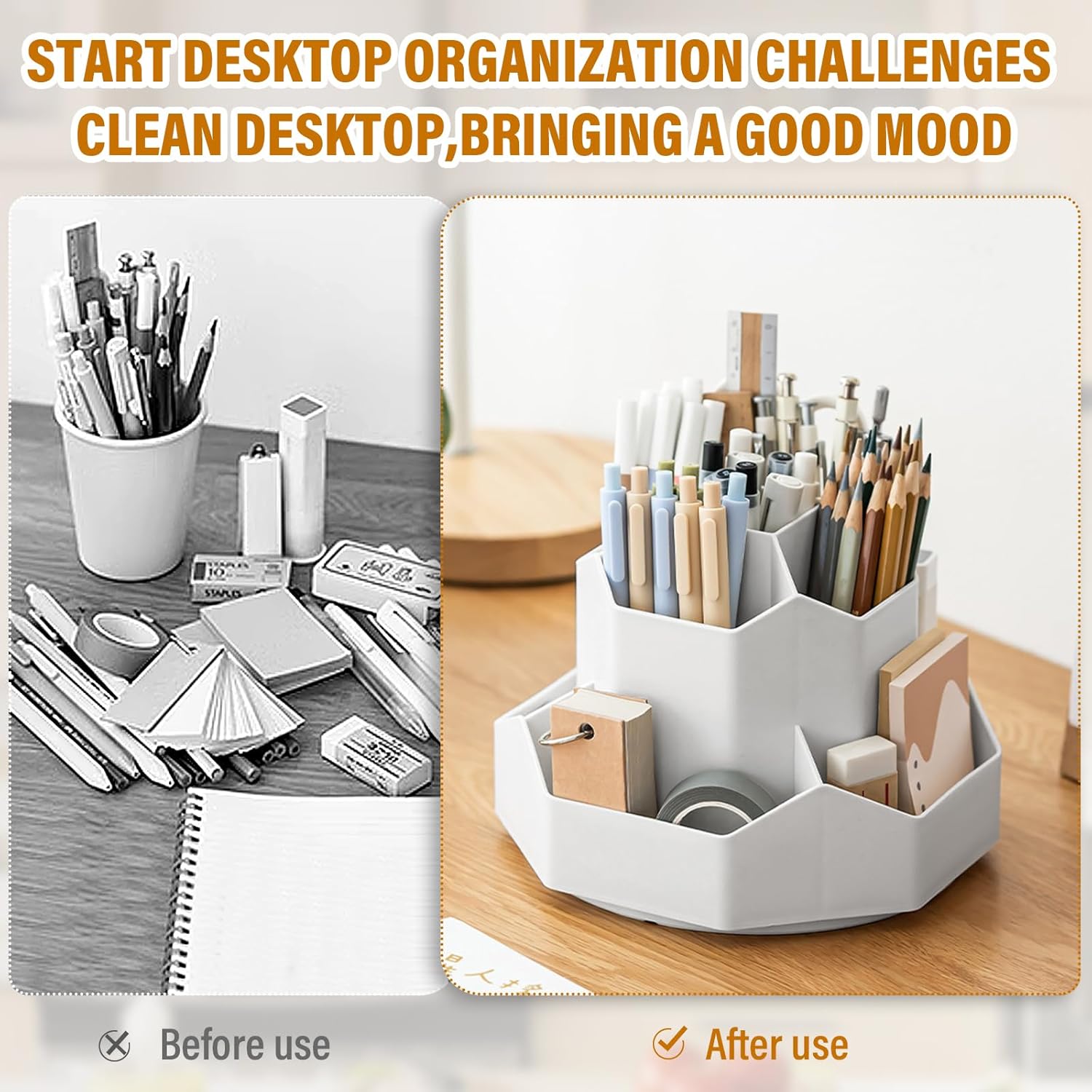 360 Degree Rotation Pen Holder,9 Slots Pencil Holder for Desk,Desk Organizer,Desk Accessories & Workspace Organizers,Apply Office, School, Home(Grey