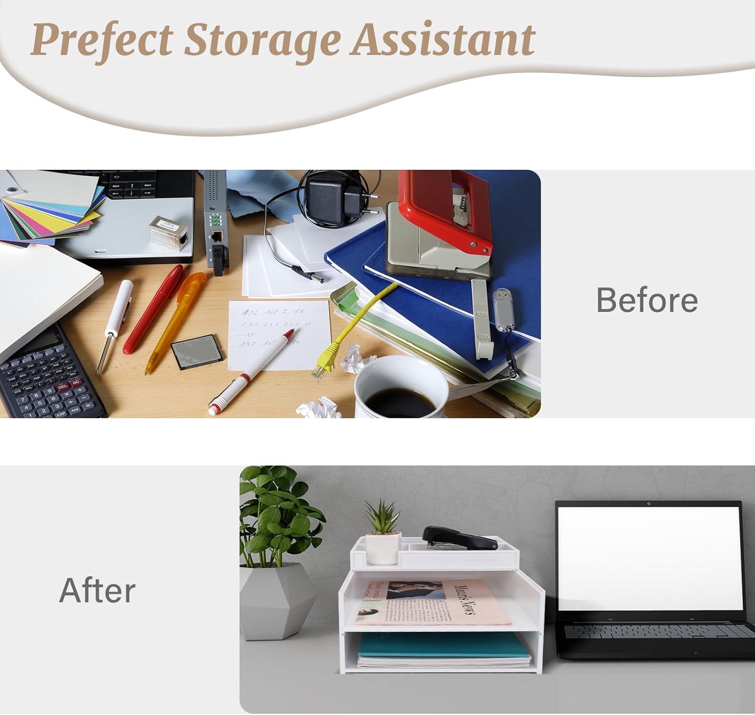 - Multiple Functional Desktop File Organizers for Office School Supplies- This stackable desk organizers and storagers are great for school, home, and office to organize textbooks, notebooks, teachers' and students' files, test papers,notebooks, textbooks, brochures, documents, magazines, stationery, A4 printer paper, etc.
