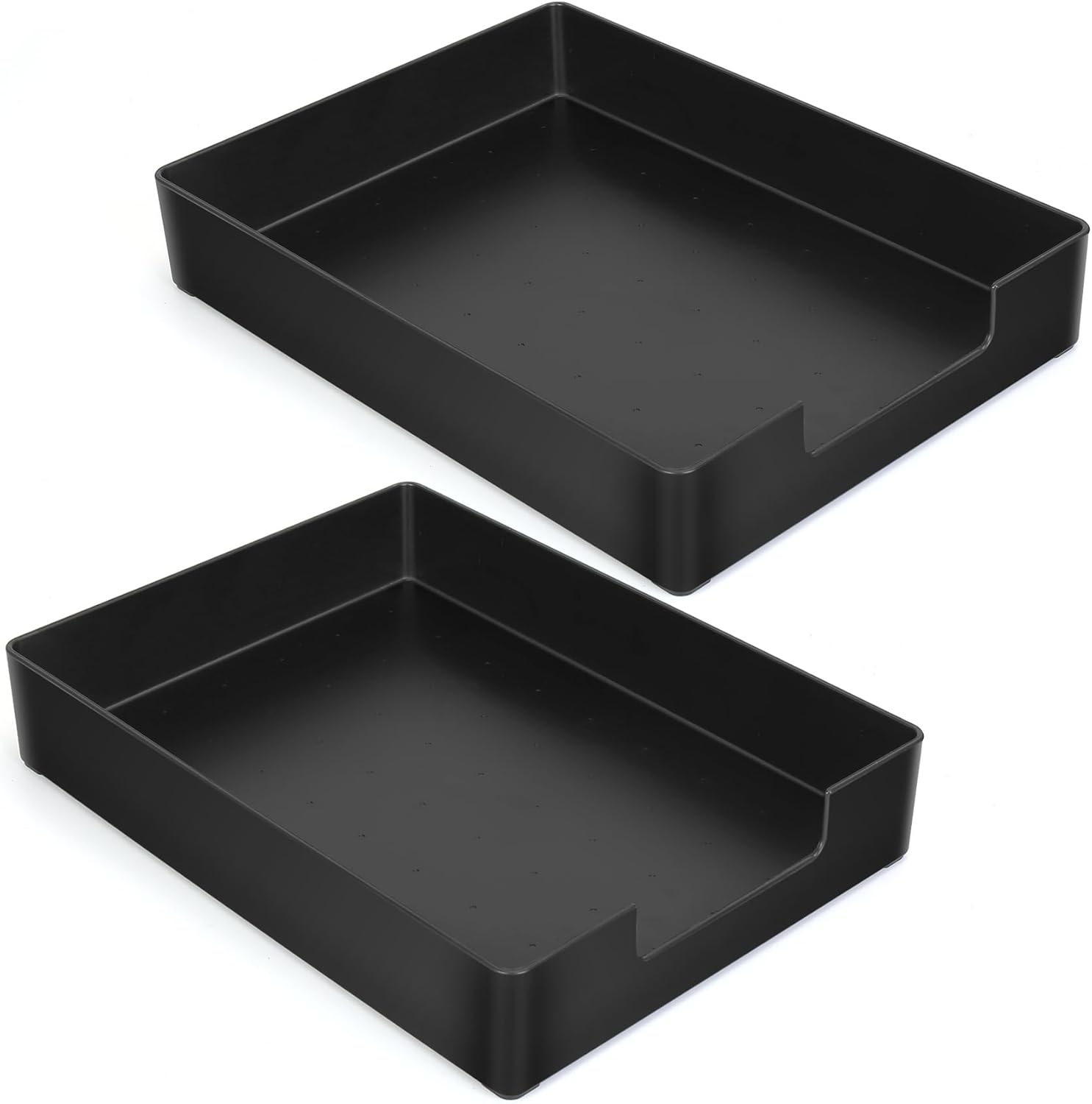 Letter-Size Tray, 2PCS Plastic Stackable A4 Paper Tray, Desk Drawer Organizer, Multi-use Large Storage Basket for Office Home Supplies,13 x 9.6 inch