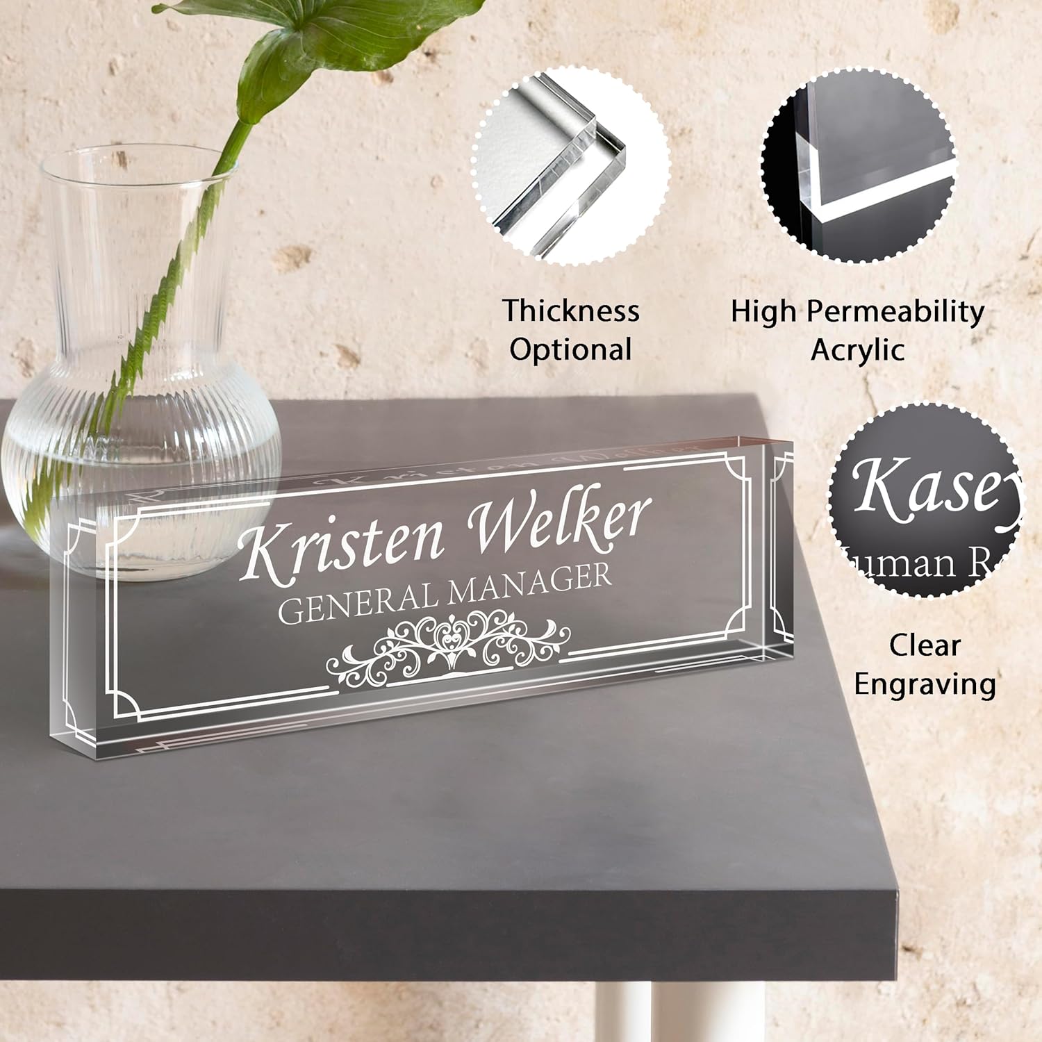 Gowellly Desk Name Plate Personalized - Custom Acrylic Name Plate for Desk - Enterprise Custom Logo/Text nameplates - Employee Appreciation Gifts (engrave-7)