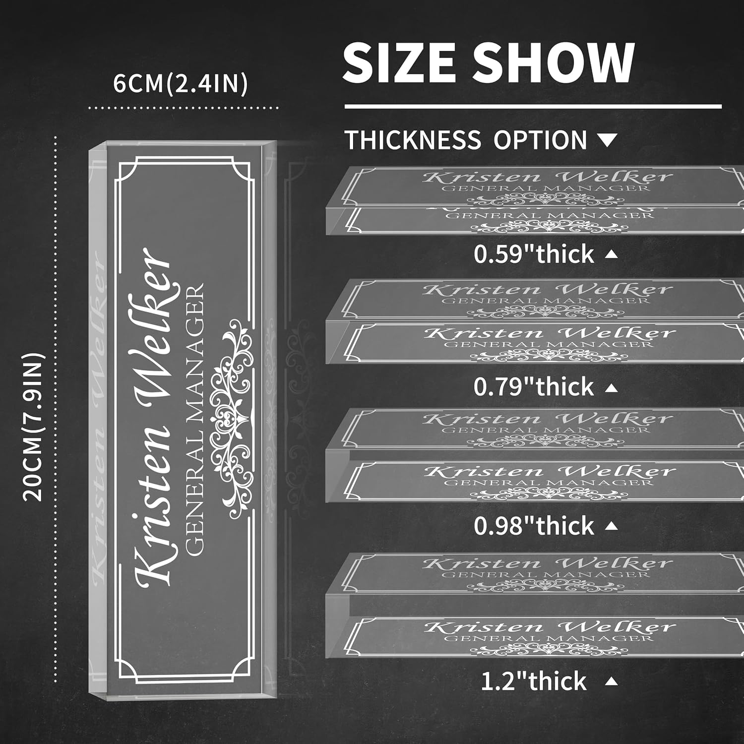 - đăPersonalization OptionsăWe have hundreds of designs for you to choose from, there is something for you. Professional designers design unique styles, laser engraving will never be engraved, there are 4 thicknesses and 2 Layout Options to choose from, the thickness is 0.59/0.79/0.98/1.2 inches to meet all your needs, choose the one that suits you and click Brighten up your desk. Please click the "Customize Now" button to customize your exclusive nameplates together!