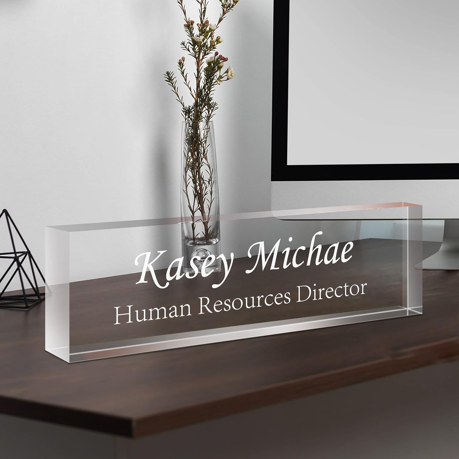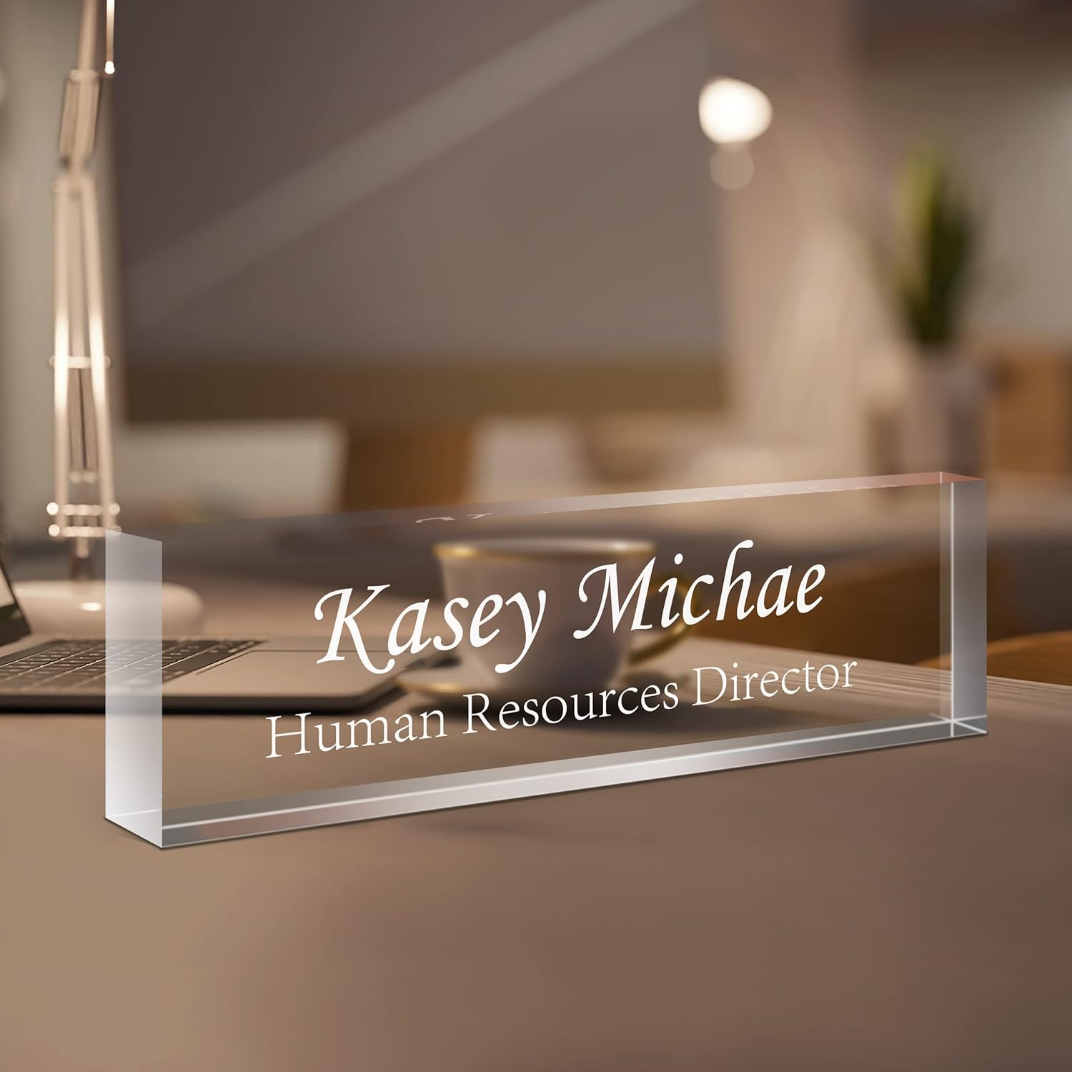 Gowellly Desk Name Plate Personalized - Custom Acrylic Name Plate for Desk - Enterprise Custom Logo/Text nameplates - Employee Appreciation Gifts (engrave-6)
