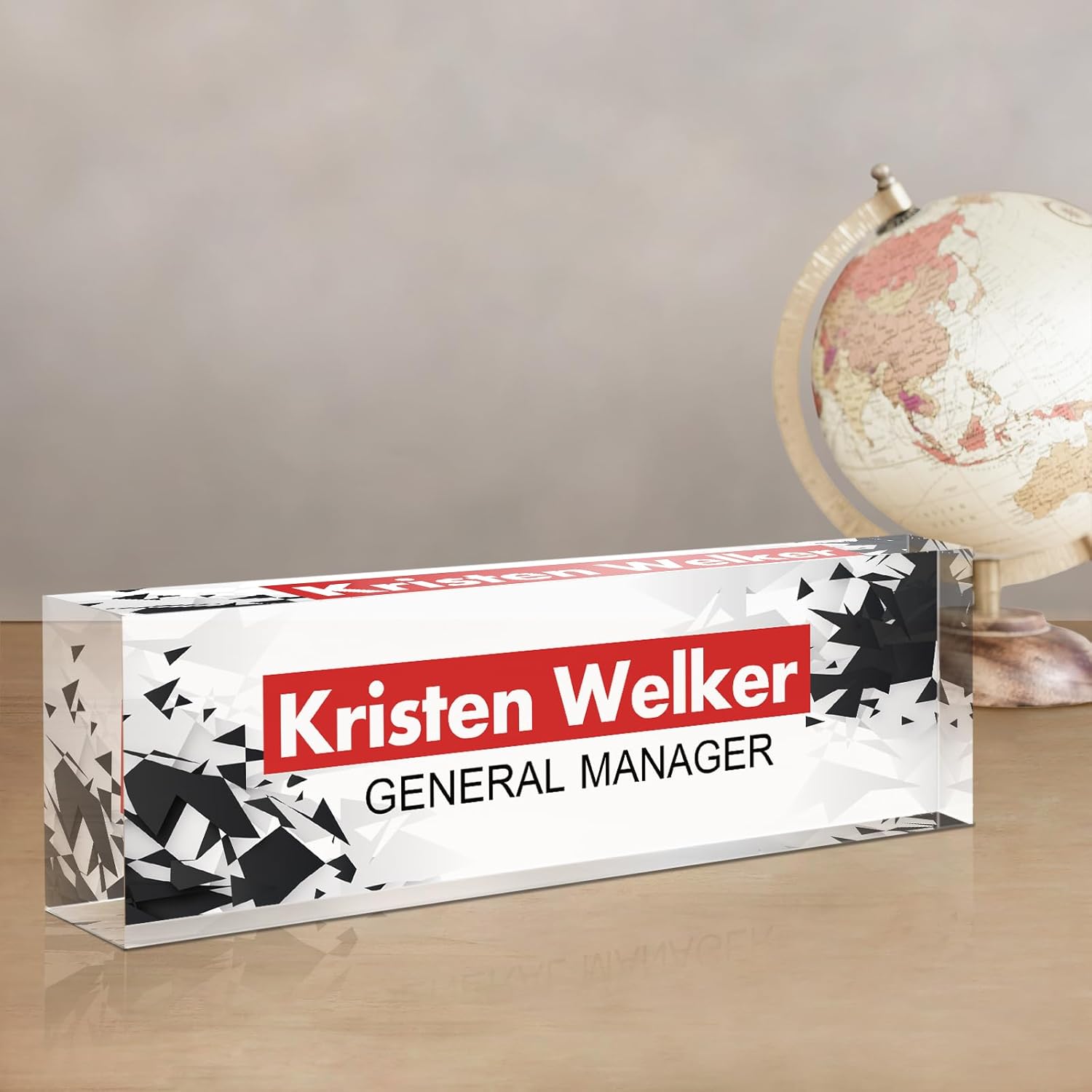 Gowellly Desk Name Plate Personalized - Custom Acrylic Name Plate for Desk - Enterprise Custom Logo/Text nameplates - Employee Appreciation Gifts (White/Red)