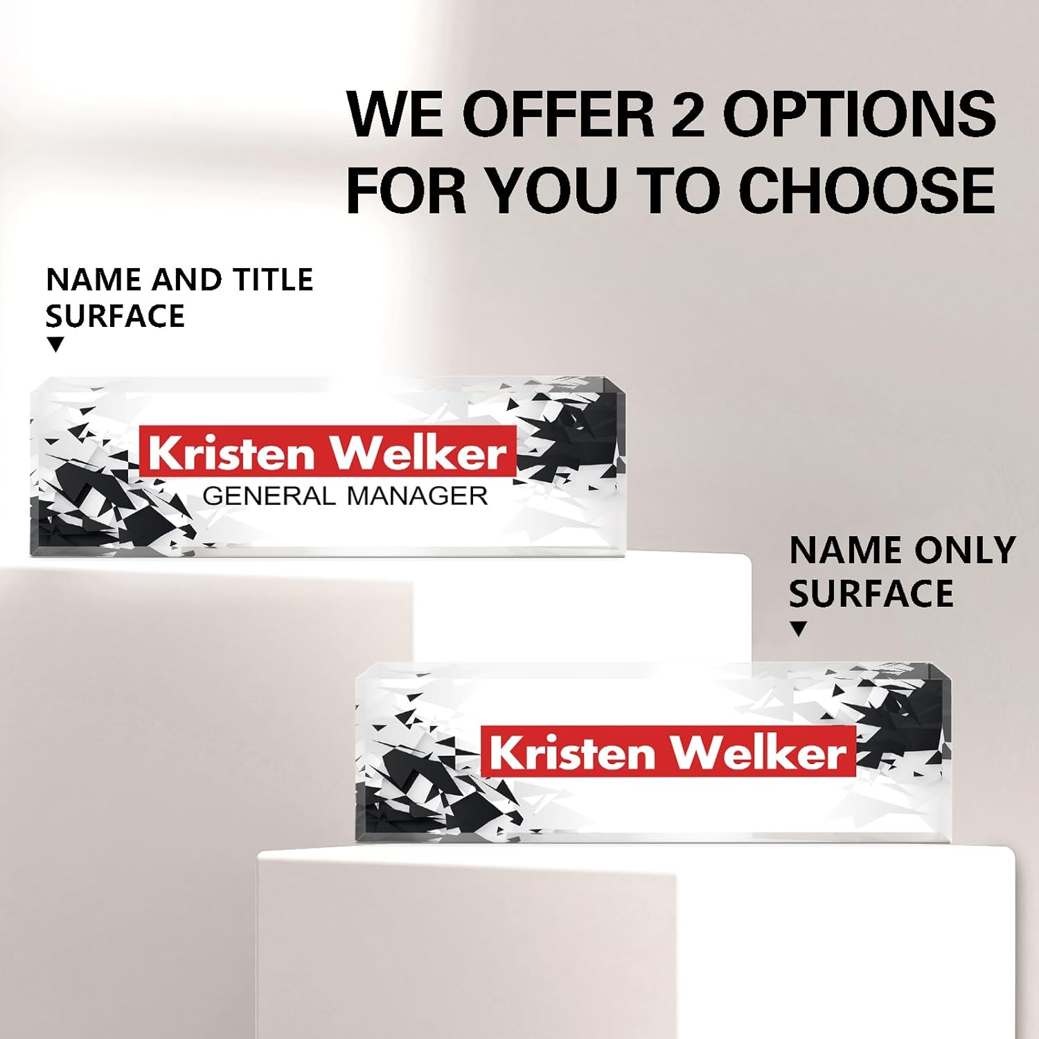 - đăPersonalization OptionsăWe have hundreds of designs for you to choose from, there is something for you. Professional designers design unique styles, laser engraving will never be engraved, there are 4 thicknesses and 2 Layout Options to choose from, the thickness is 0.59/0.79/0.98/1.2 inches to meet all your needs, choose the one that suits you and click Brighten up your desk. Please click the "Customize Now" button to customize your exclusive nameplates together!