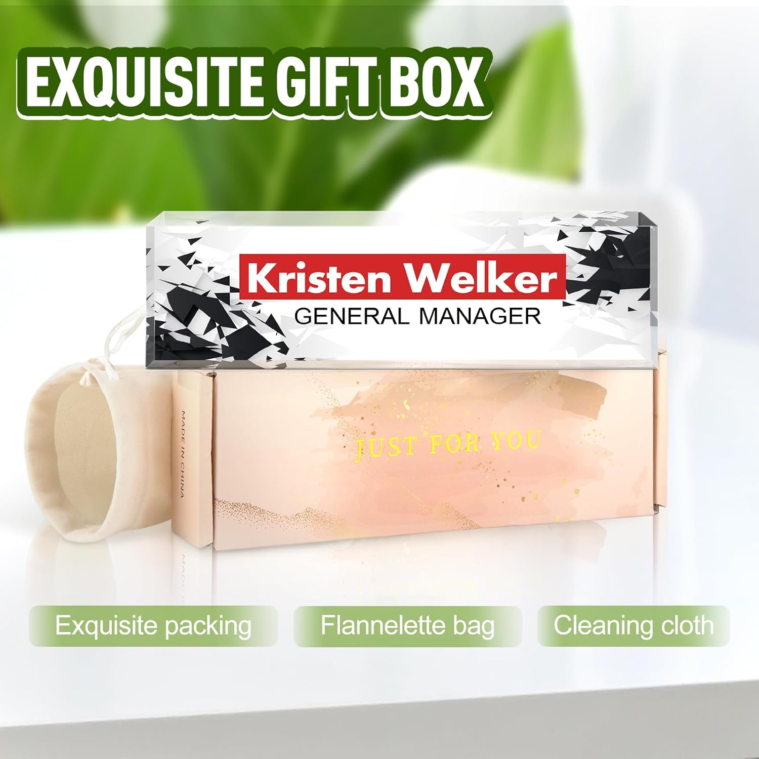 - đăDistinctive Office DecorăIn recent years, countless custom-made name plate customers have received envious eyes and praise from colleagues. For traditional boring nameplates, we continue to innovate and update printing/laser technology, only for the exquisite carving of each design Finely cut acrylic glass art ornaments sparkle on your desk and attract everyone's attention
