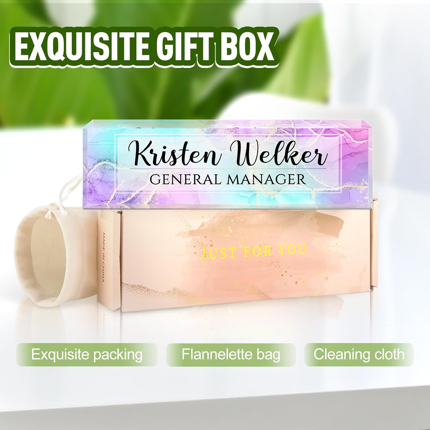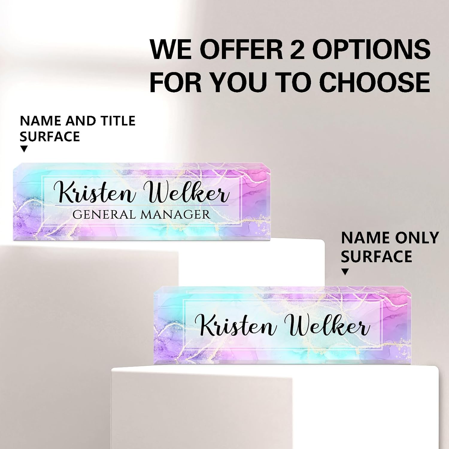 Gowellly Desk Name Plate Personalized - Custom Acrylic Name Plate for Desk - Enterprise Custom Logo/Text nameplates - Employee Appreciation Gifts (Colored Marble)