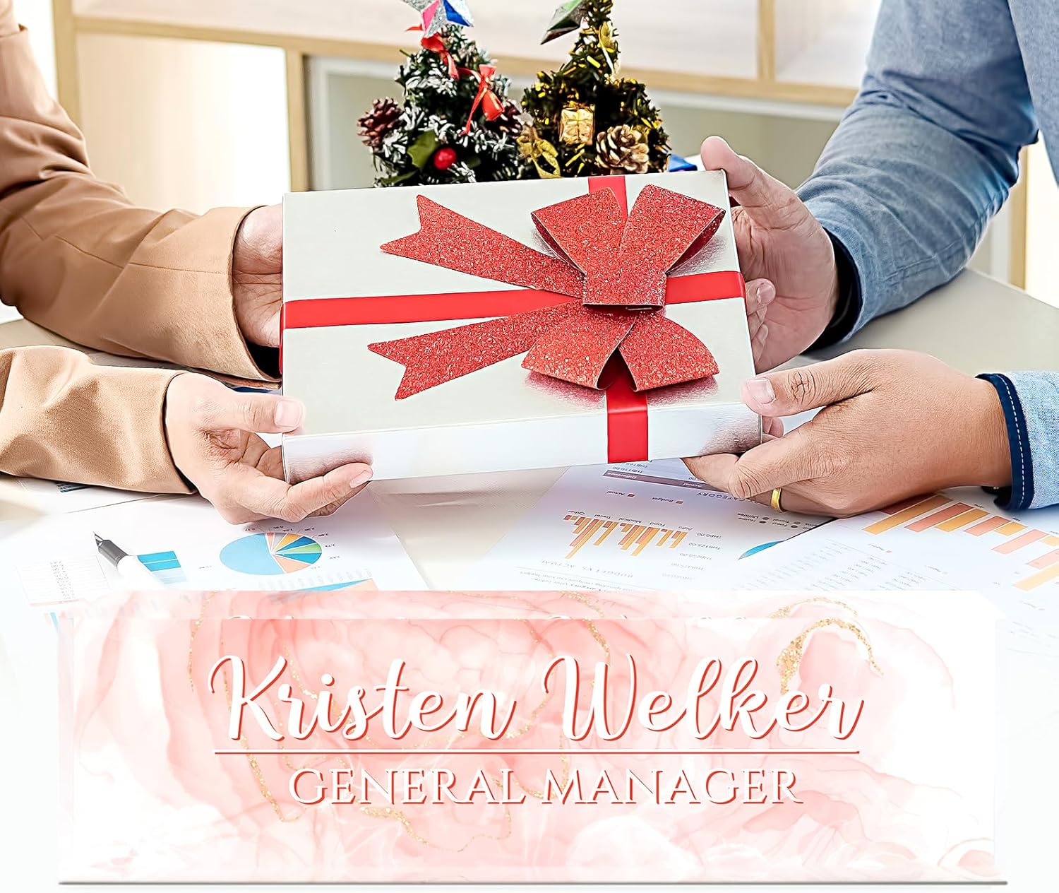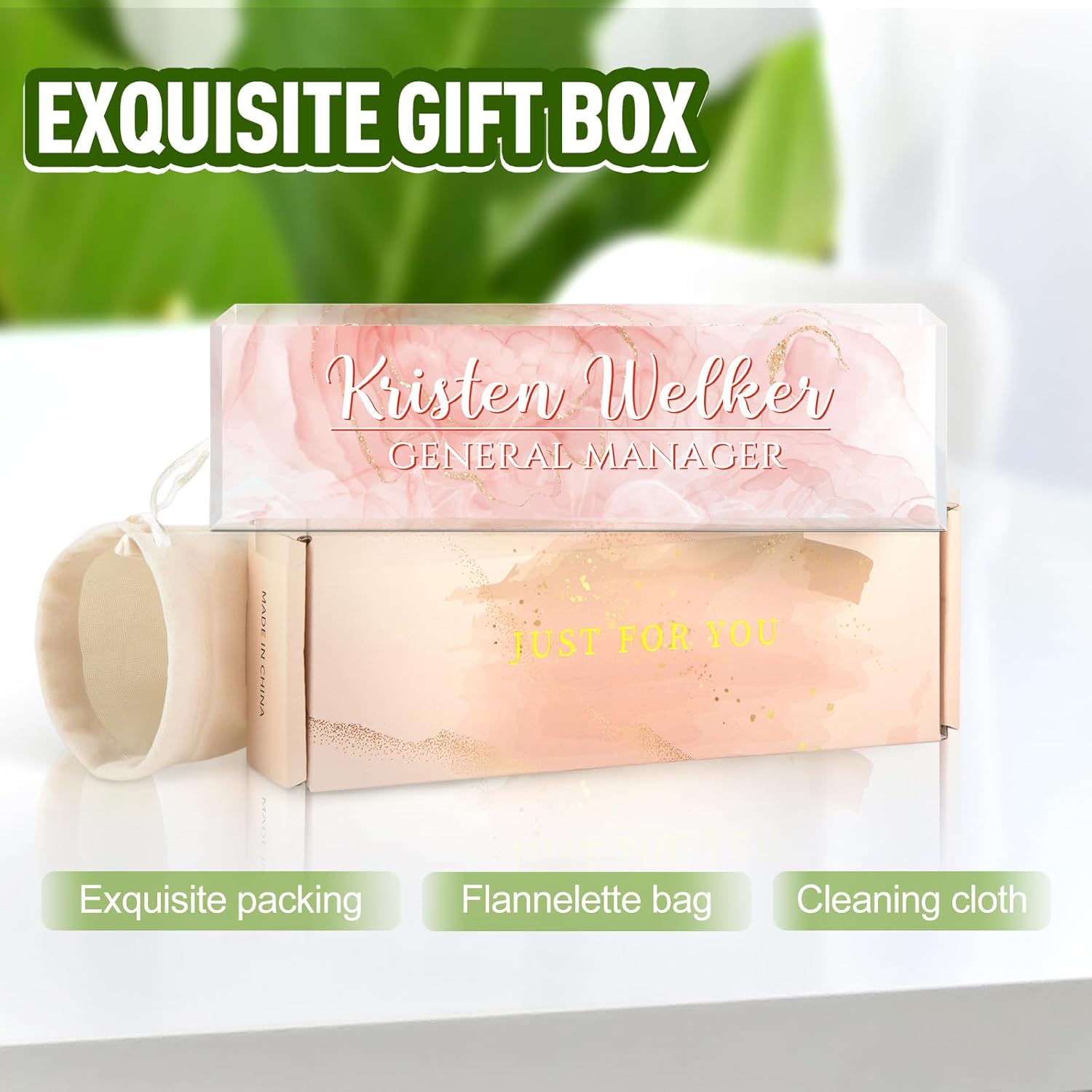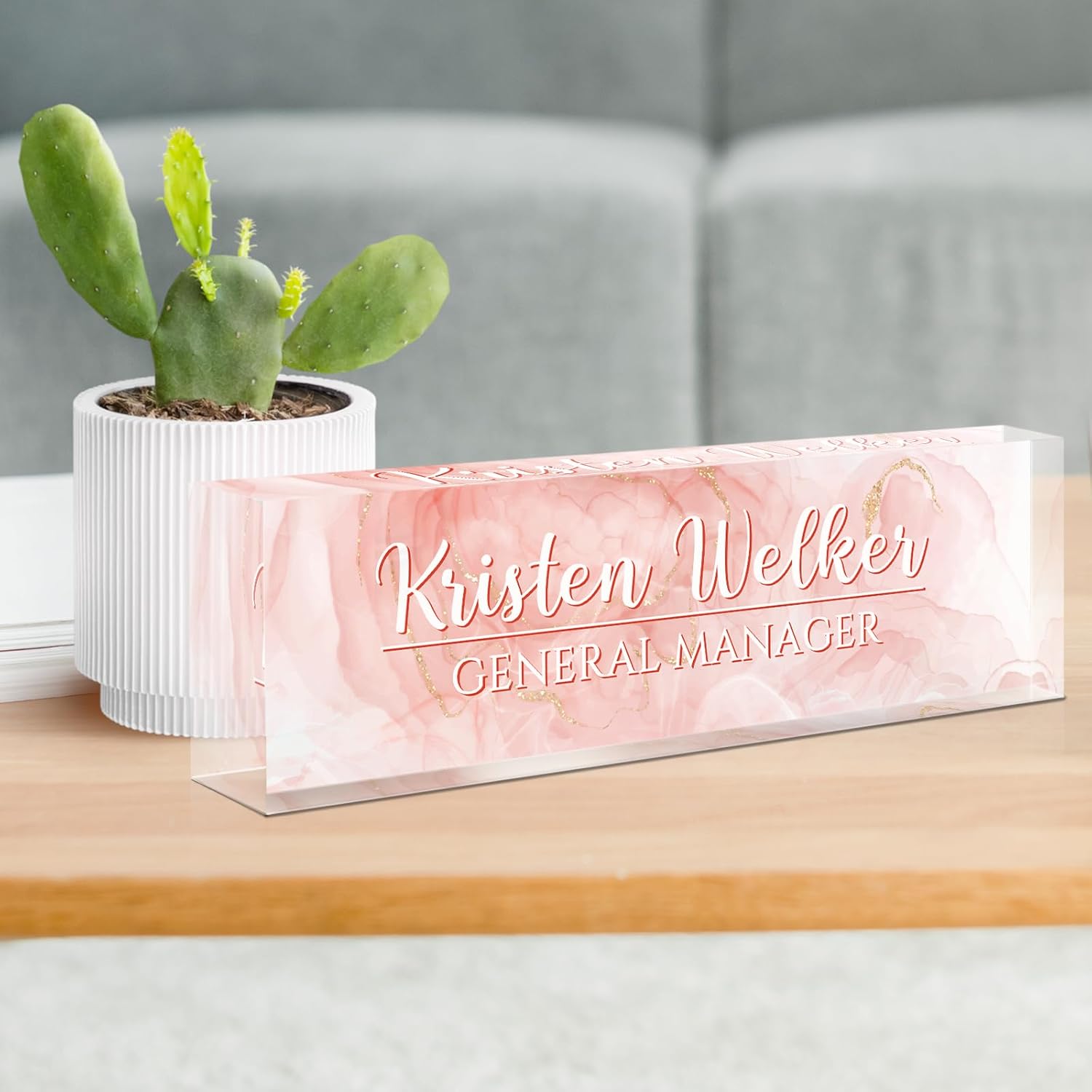 Gowellly Desk Name Plate Personalized - Custom Acrylic Name Plate for Desk - Enterprise Custom Logo/Text nameplates - Employee Appreciation Gifts (Pink)