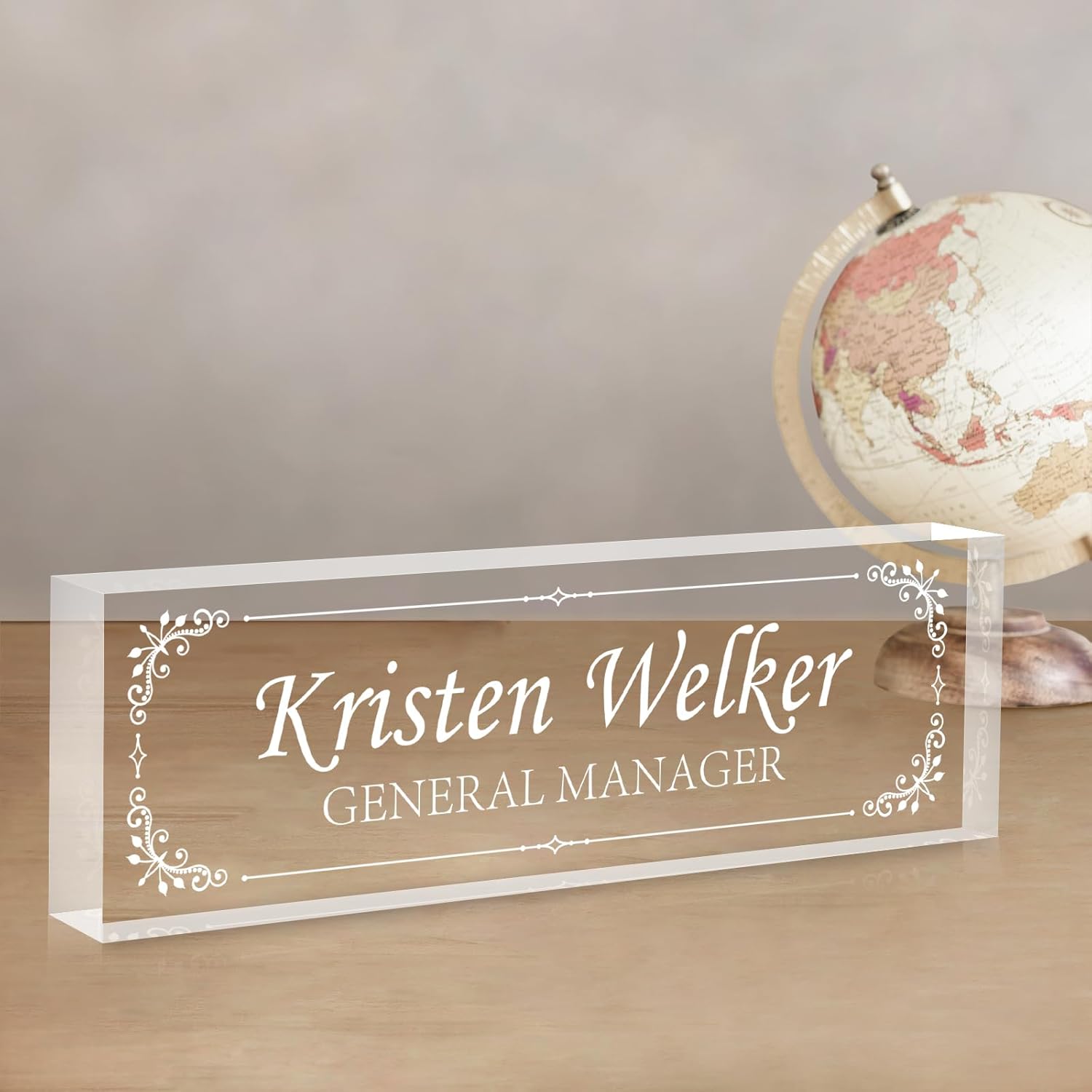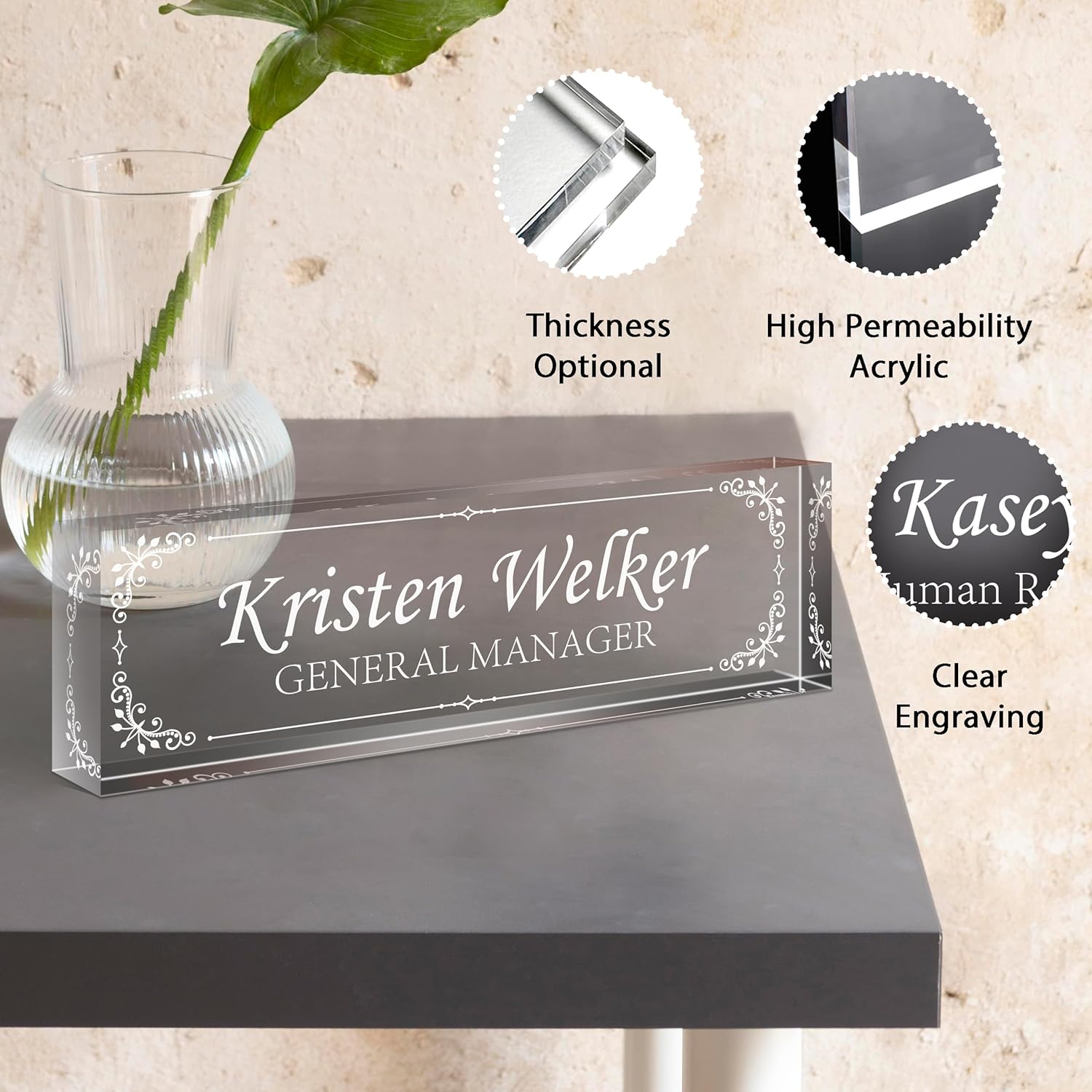 Gowellly Desk Name Plate Personalized - Custom Acrylic Name Plate for Desk - Enterprise Custom Logo/Text nameplates - Employee Appreciation Gifts (engrave-1)