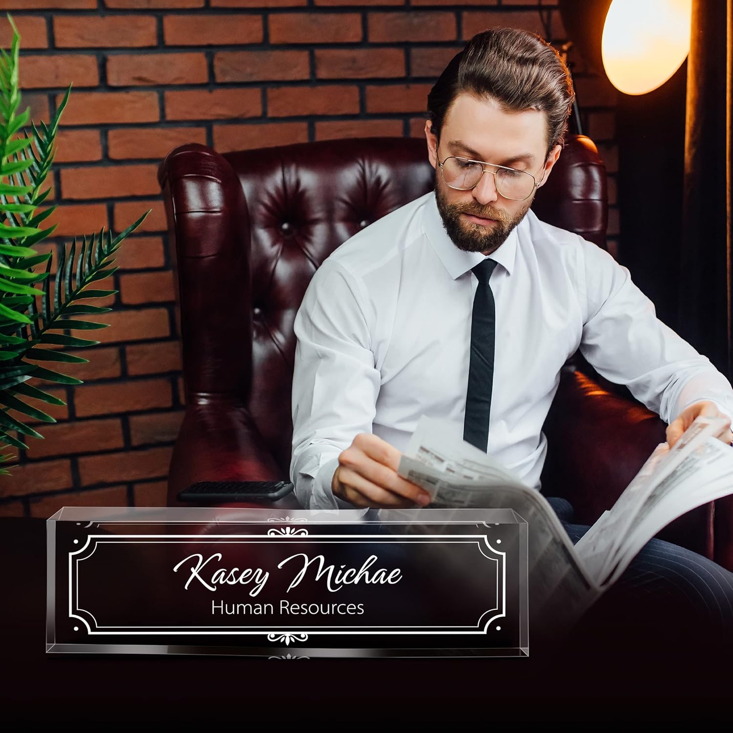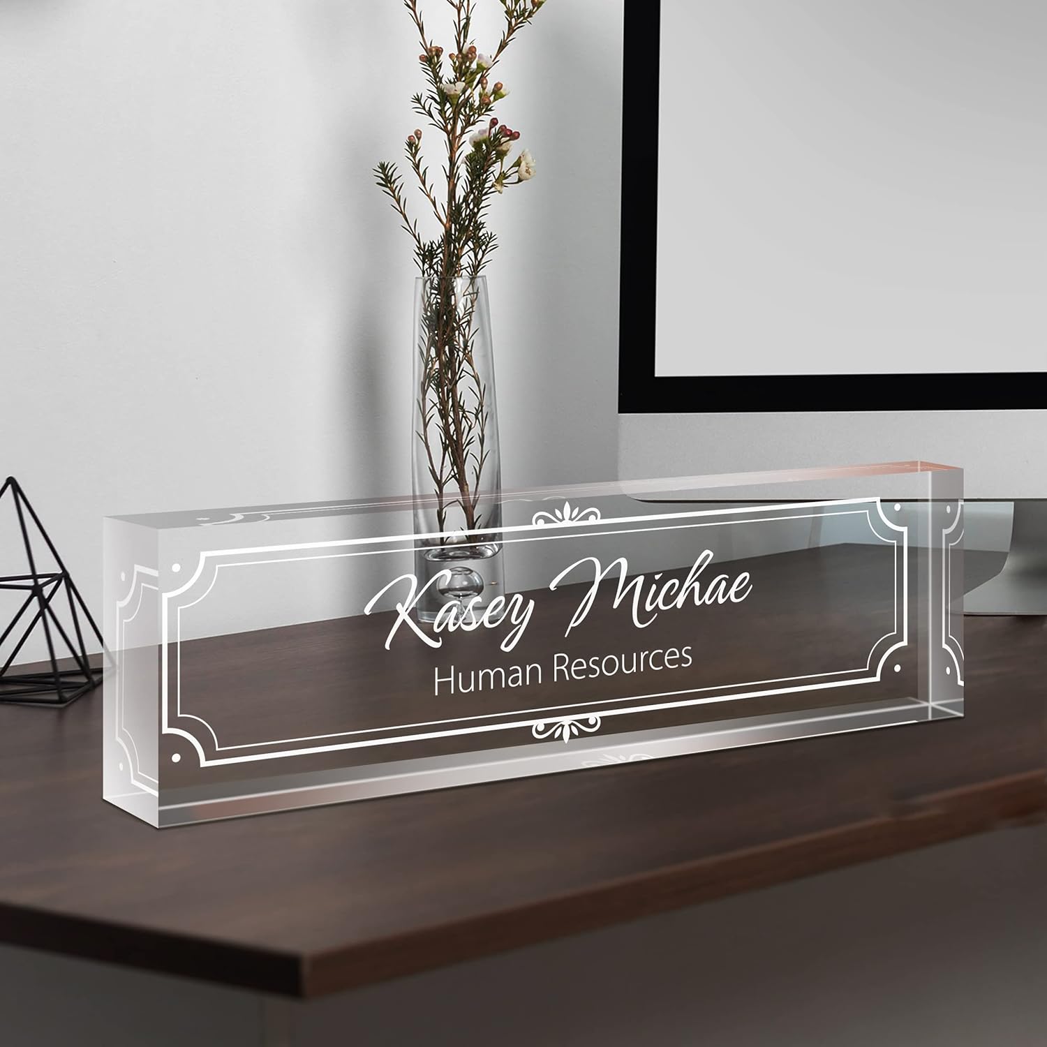 Gowellly Desk Name Plate Personalized - Custom Acrylic Name Plate for Desk - Enterprise Custom Logo/Text nameplates - Employee Appreciation Gifts (engrave-4)