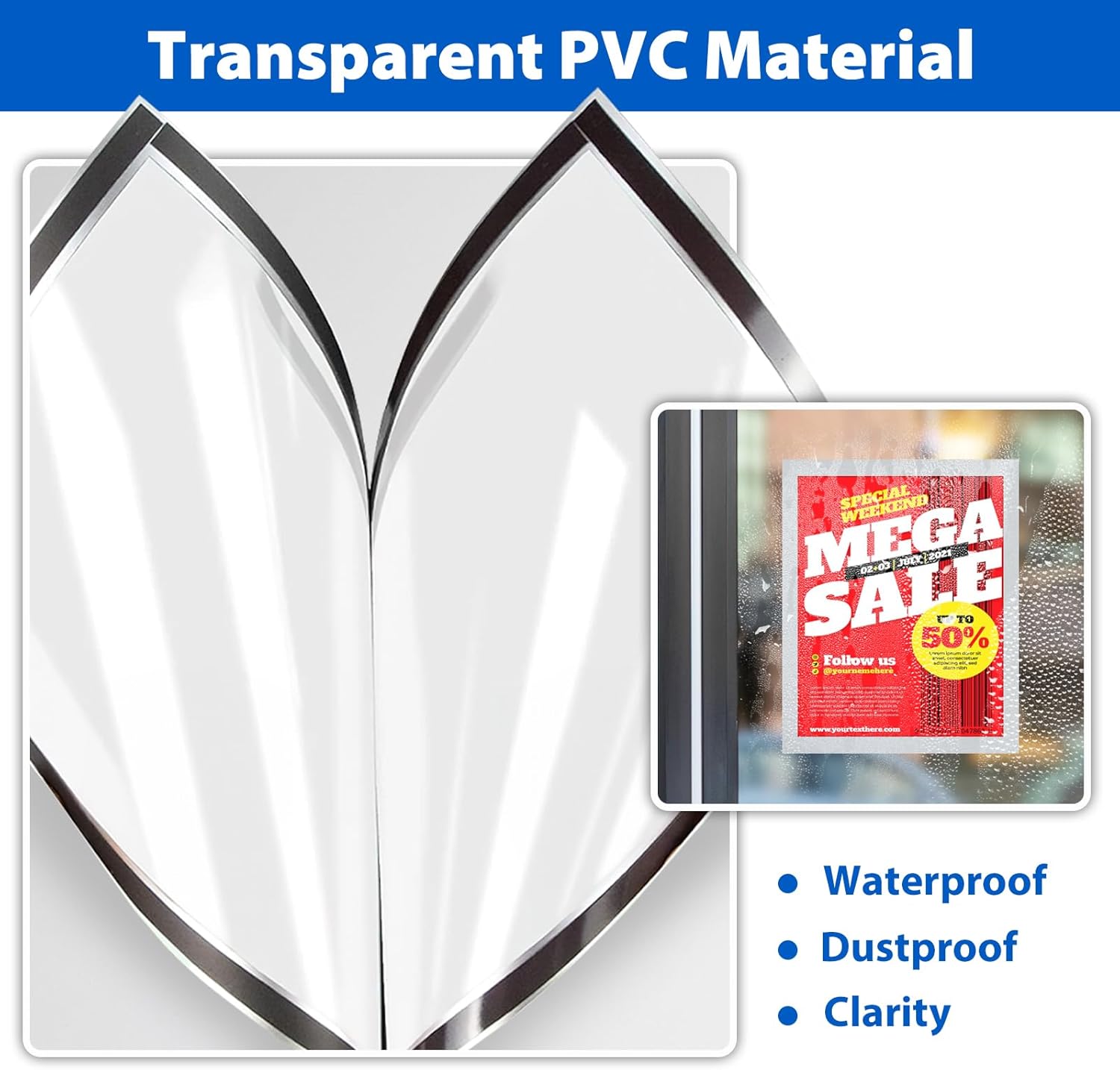 - ✔Transparent PVC Cover - The front cover of the magnetic sign holder is made of transparent PVC, which prevents dust, rain and stains from entering and effectively protects the clarity of the poster.