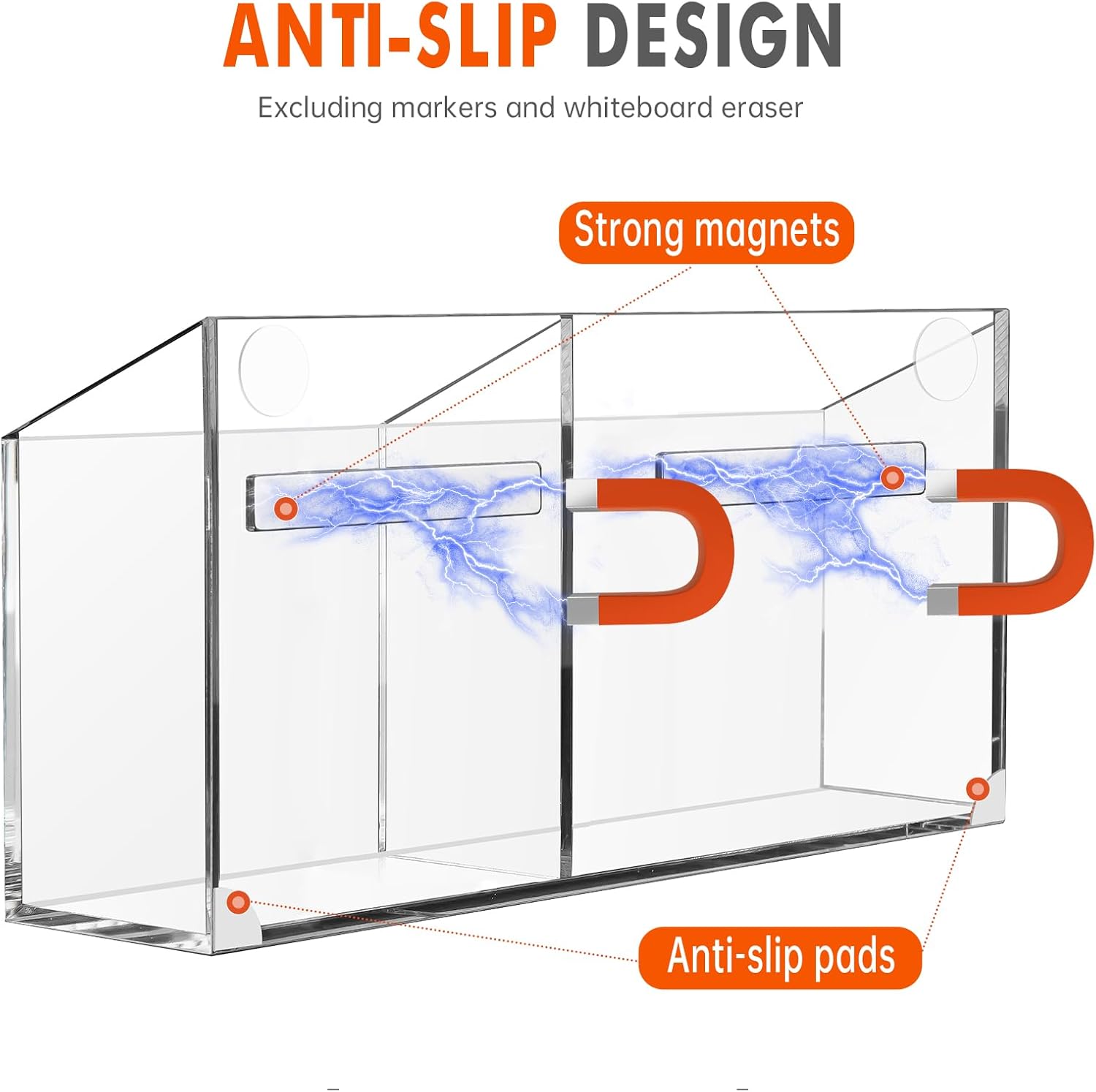 - ăMAGNETIC NON-SLIP PEN HOLDERă- The 2023 Newest magnetic anti-slip pen holder.There are too many magnetic pen holders now,only a few offer the anti-slip functionality that our product does. You will be surprised by its effectiveness(Excluding markers and Whiteboard eraser)