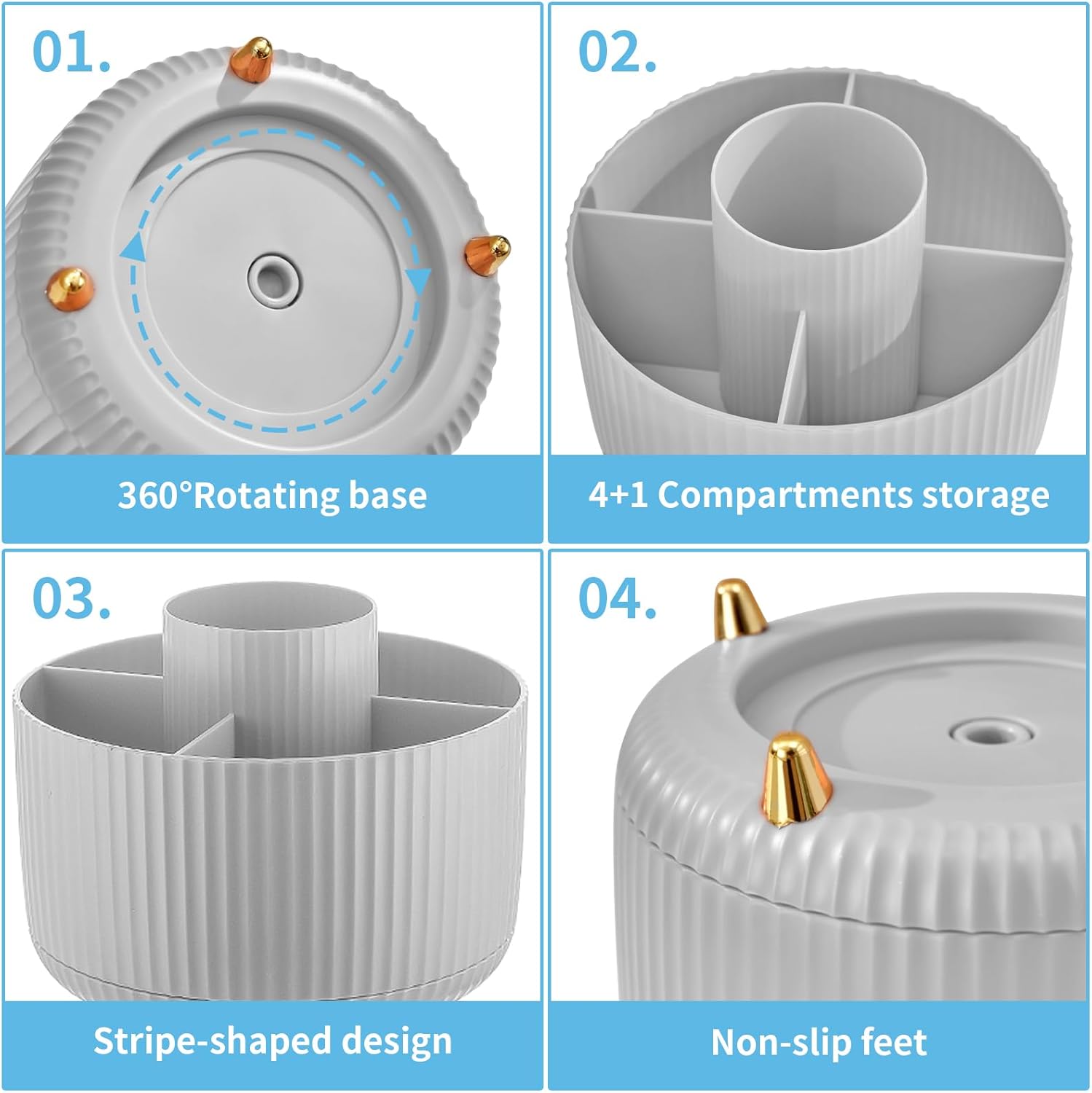 - ăSmart 360 Degree Revolving Designă: This desktop organizer can be turned up to 360-degree rotation to the left and right. This storage caddy allows you to keep all of your small items within reach while staying out of your way. You can always get what you want quickly and easily. The product can be bilaterally and smoothly rotated, just turn as you please