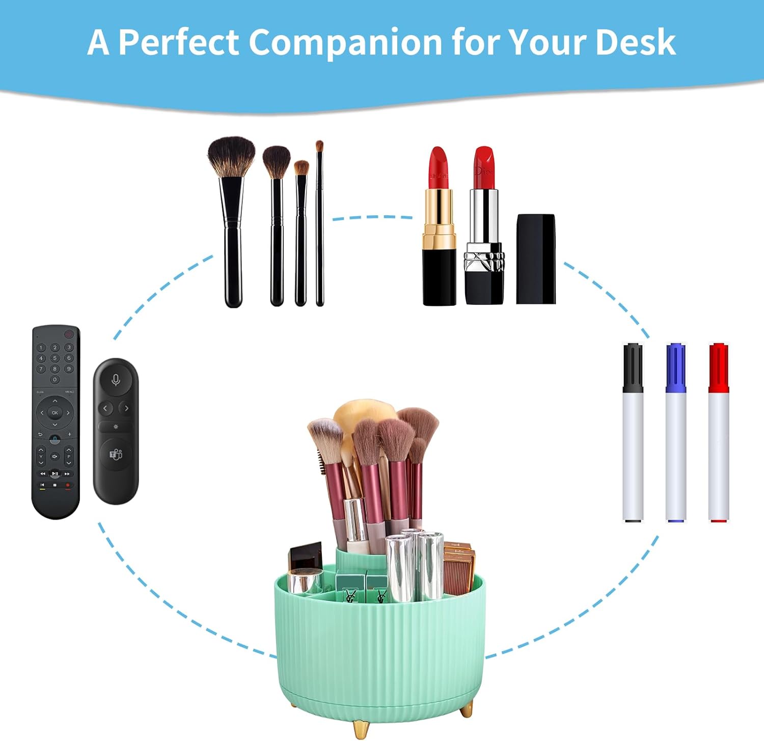 - ăMultipurpose Desktop Organizeră: This rotating storage organizer is perfect for pencils, cosmetics, bathroom necessities, toiletries, and even kitchen utensils. Try it in your craft room, playroom, laundry/utility room, and even inside bathroom cabinets or under the sink; Store extra office supplies like painting pens, correction tape, scissors, TV Remote, and more; Even headphones or a charger will no longer be lying around in the future! Maximize your vertical space and keep your desk clear