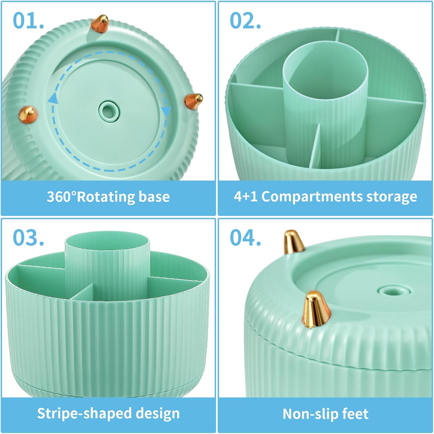 Marbrasse Desk Organizer, 360-Degree Rotating Pen Holder, Desk Organizers and Accessories with 5 Compartments Pencil Holder, Art Supply Storage Box Caddy for Office, Home (Mint Green)