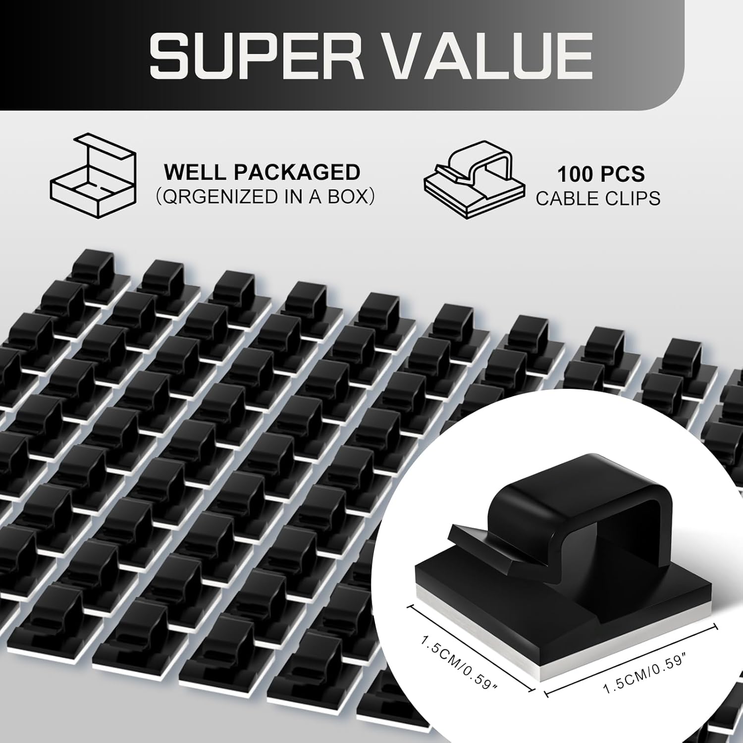 - Adhesive Cable Clips: Made of high-quality PA66 material and strong adhesive, strong and durable. No drilling is required for use, no residue is left behind, and the surface will not be damaged. Set contains 100 cable clips, cable clips size: 15x15x9mm.