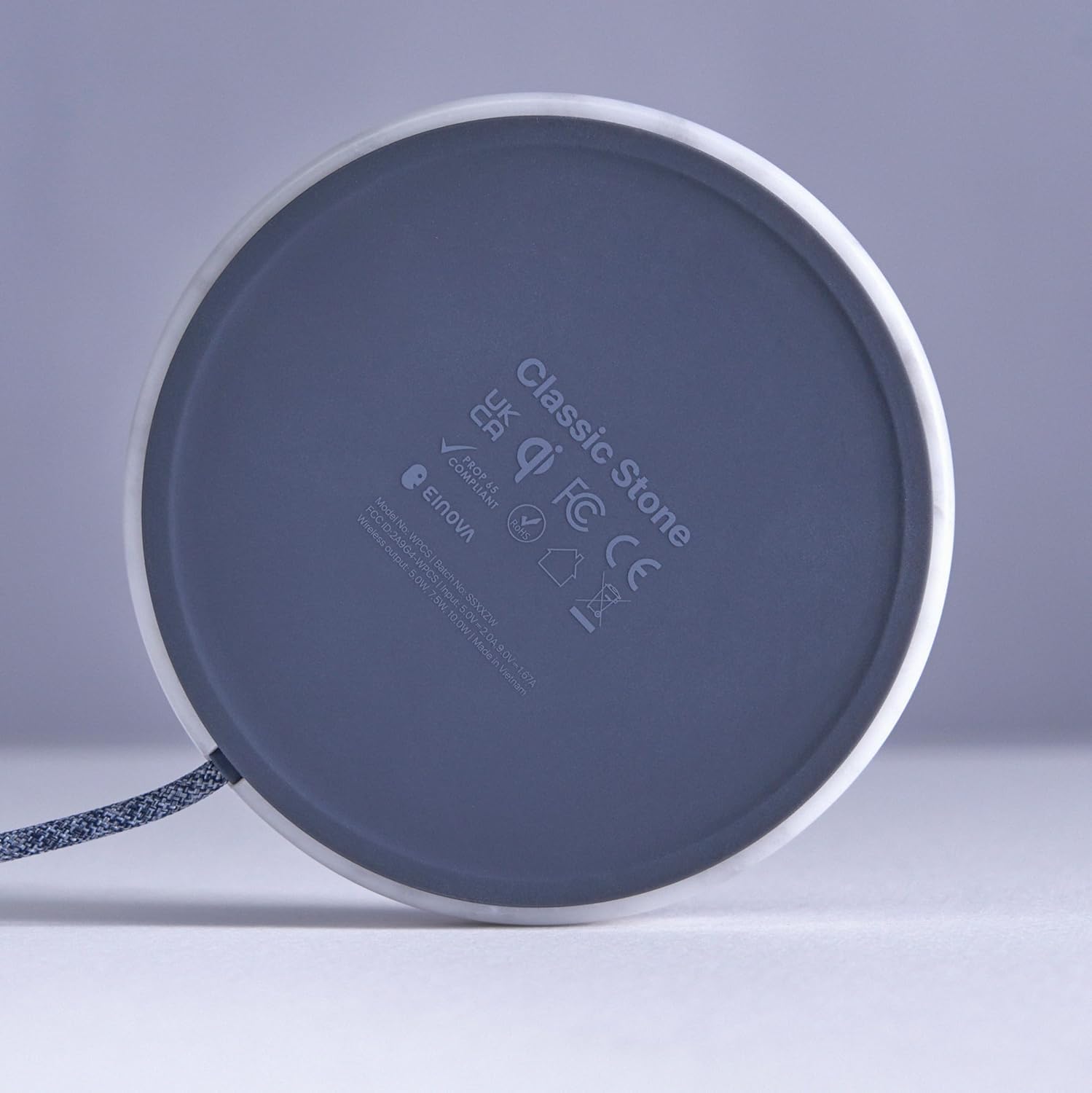 Einova Classic Stone – Marble Wireless Charging Pad Designed in Italy, Integrated 6 ft USB-C Cable, Smartphones, Wireless Earbuds, Smartwatches – White Carrara Marble