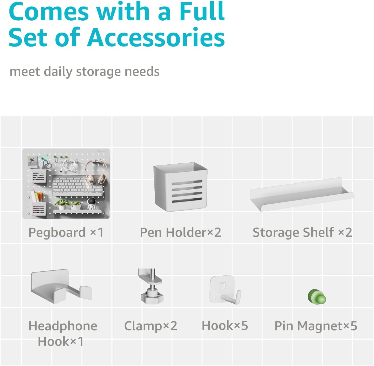 - ENDLESS STORAGE POSSIBILITIES: With its rich and multi-functional accessories, this desk organizer offers limitless storage options to keep your workspace tidy. Perfect for storing office supplies, displaying craft supplies, or organizing your favorite gaming accessories, this pegboard is a game changer for clutter-free living.