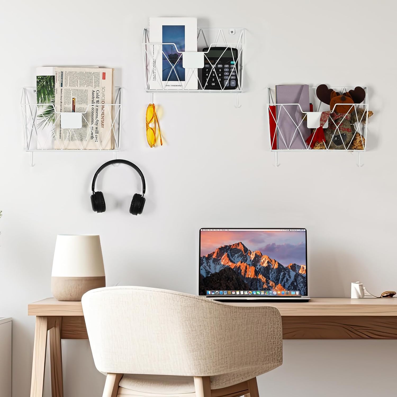 - 【Mail Holder Wall Mount】The hanging metal file holder has 3 separate wall baskets, which are great for sorting files, documents, magazines, mail, notebooks, books and so much more. And you also use a wall mail organizer for bathroom and kitchen organization.