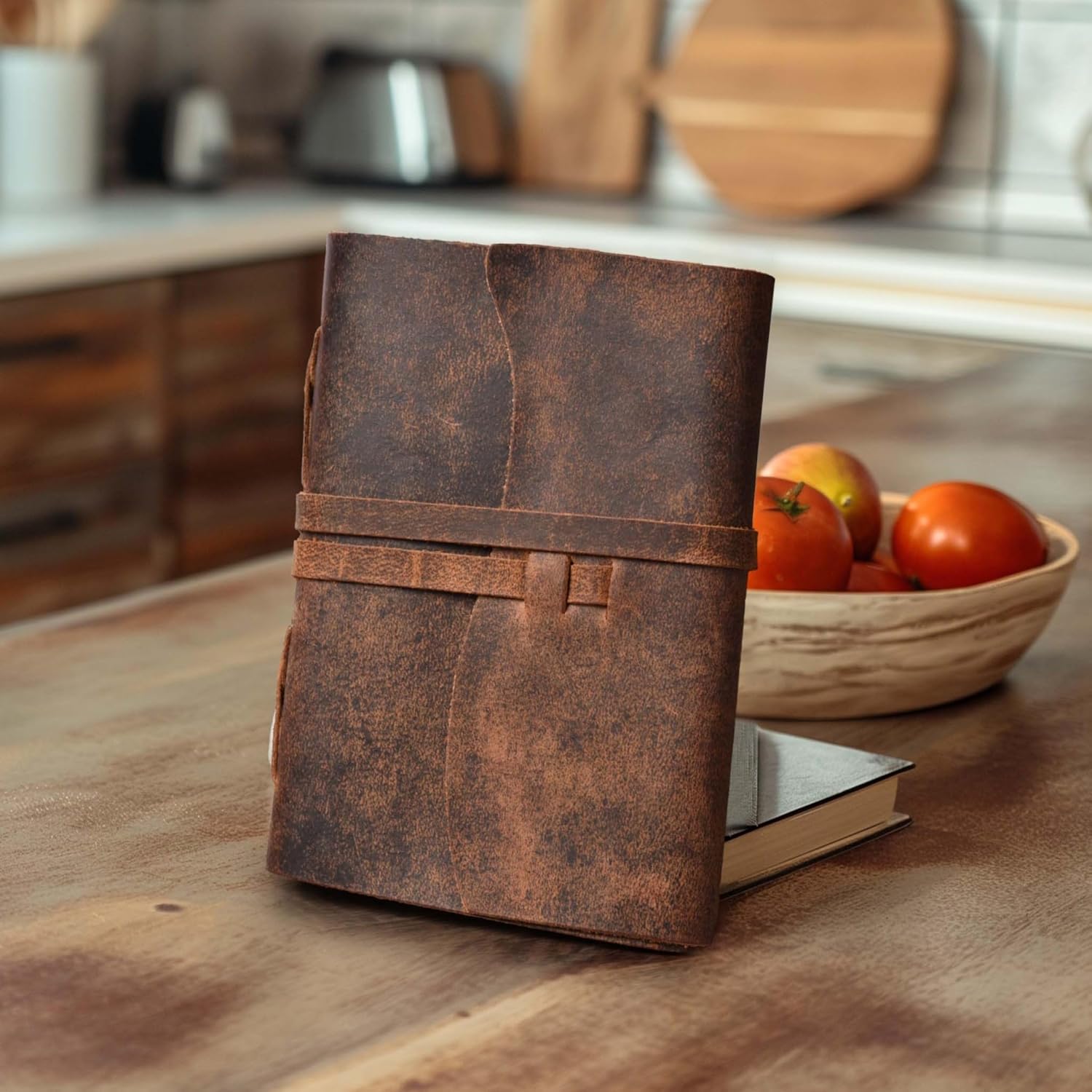 - š Luxurious Craftsmanship š - Dive into the world of premium journaling with our Handmade Leather-Bound Journal/Notebook. Crafted from 100% full grain buffalo leather, this Distressed Brown, 8"x6" masterpiece promises a blend of durability and elegance. Its handstitched leather binding and strap closure exude an unmatched vintage charm, making it a timeless accessory for all.