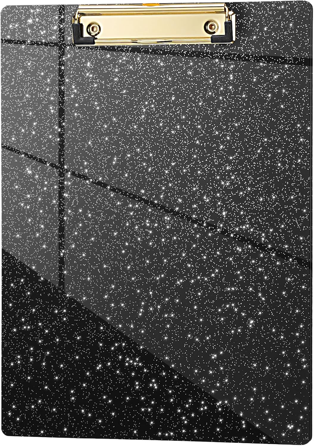 - Materials and Workmanship: Glitter clipboard with high-gloss clear surface and sturdy base, provides a smooth, portable writing area. Made of Acrylic and glitter mix pouring , designed with durable rounded corners edges, long-lasting, anti-fray and provide a comfortable hold.