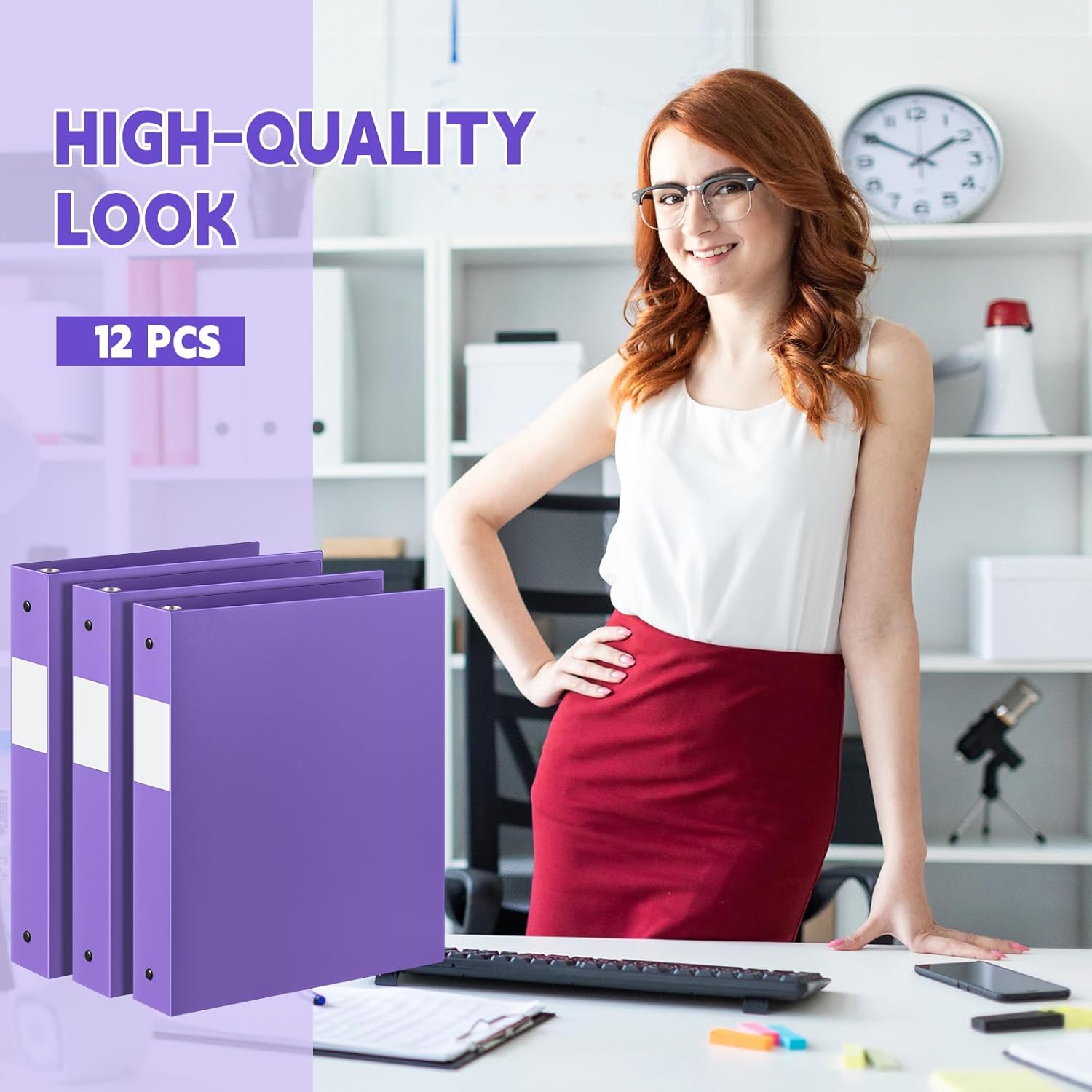 12 Pcs 1 Inch 3 Ring Plastic Binder Flexible Binders Bulk Fits Letter Size 8.5'' x 11'' Paper Holds up to 225 Sheets with 1 Pockets Versatile Binder for School Office Home (Purple)