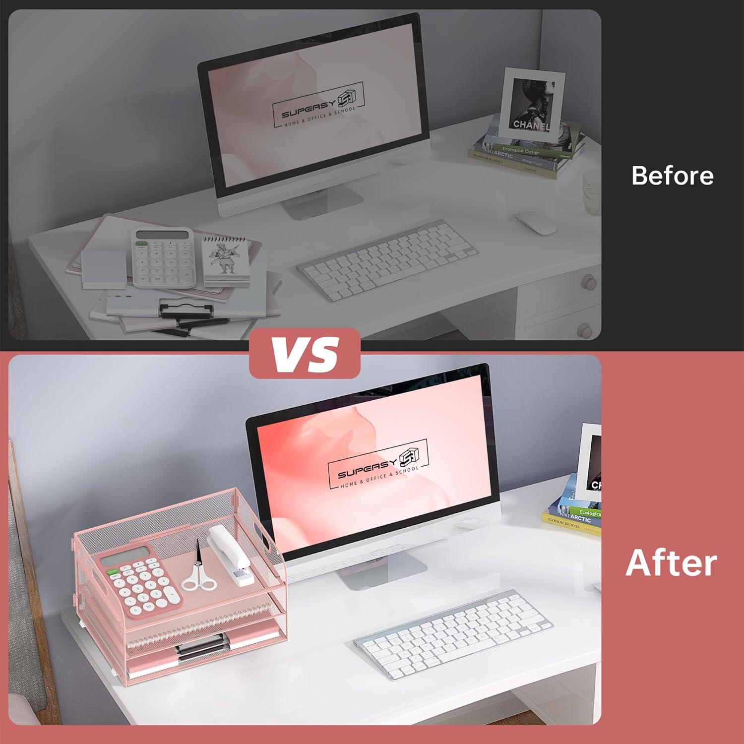 - [3 Tier Large Capacity] Upgraded SUPEASY desk organizer is 3 tier paper tray organizer. This paper organizer has 3 detachable trays which is perfect for holding letters, A4 paper, books, bills, magazines, mails, folders, notebooks and so on. The desk organizers can fully take advantage of your vertical space and keep your desktop clear and tidy.
