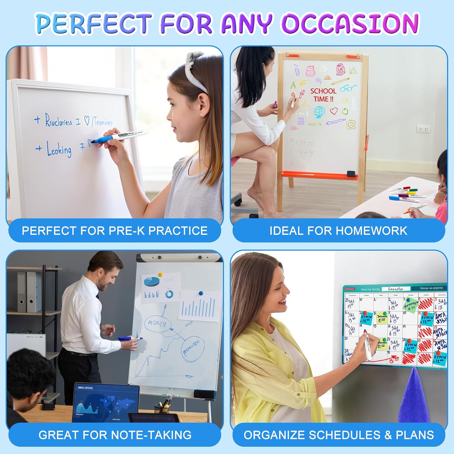 - Effortless Cleanup & No Staining or Residue: Our dry erase markers are easy to use and clean, allowing for quick erasing without leaving behind stains or residue, maintaining a neat and tidy writing space.