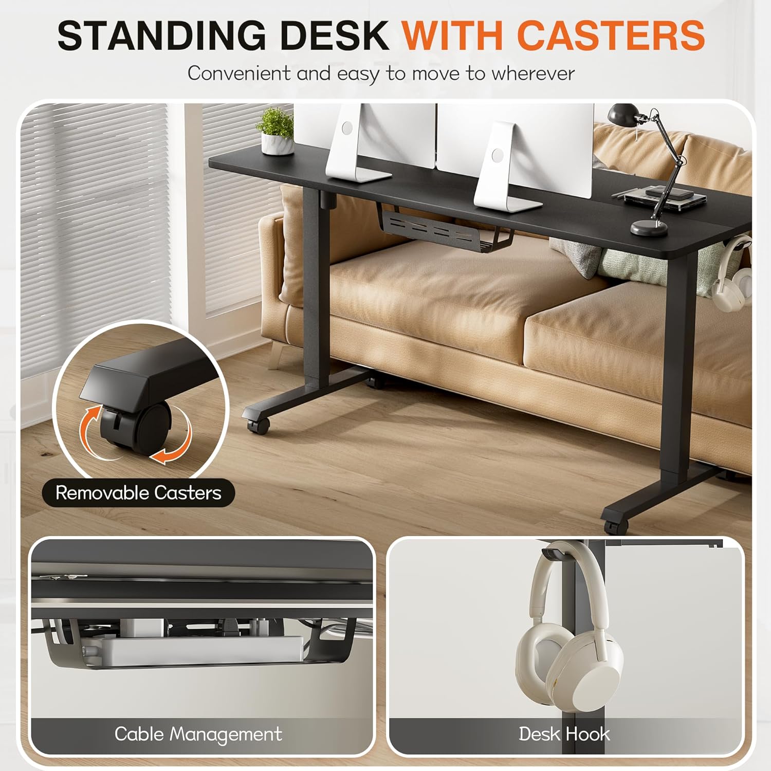 Furmax Electric Standing Desk, 59 x 24 Inches Height Adjustable Desk with Wheels, Home Office Computer Desk with Management Box (Carbon Black)