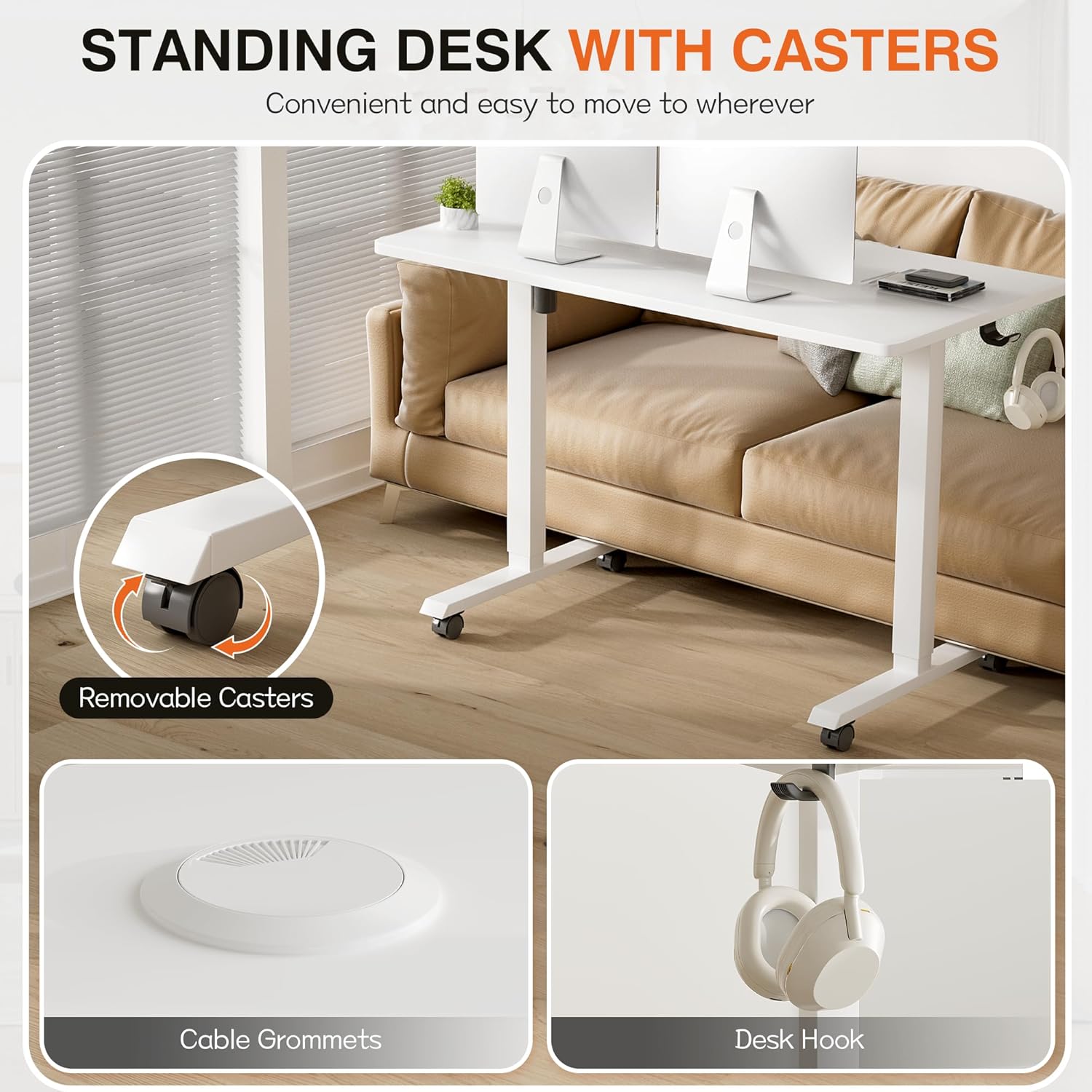 - With Removable Caster: Standing desk are equipped with additional detachable casters for easy mobility to wherever you want, while the detachable attributes do not hinder stable daily use, enjoying the pleasure of use.