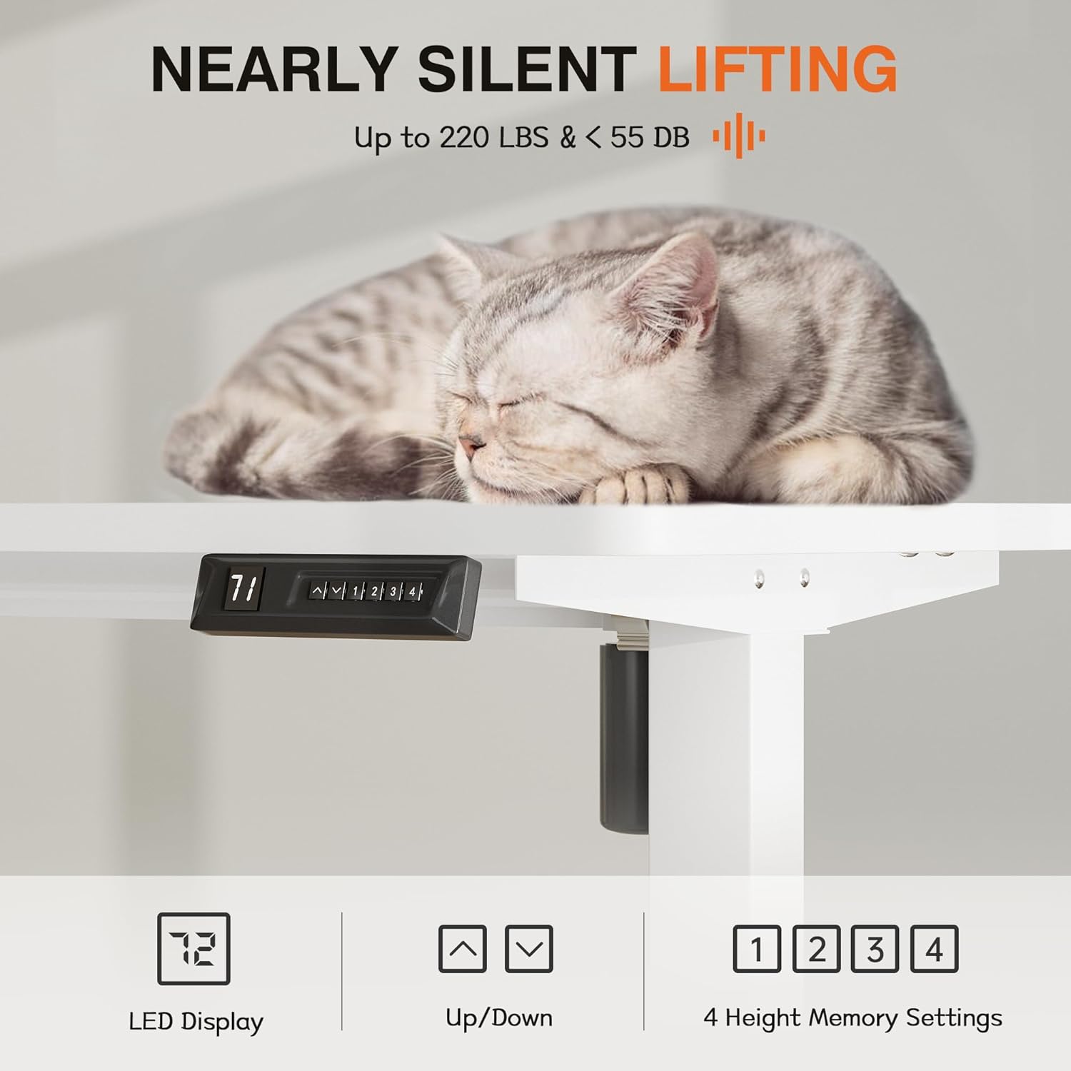 - Durable Quiet Motor: The motor is made of good quality and each has been tested more than ten inspection processes before assembling to the desk. You can adjust the height between 27.95” -46.85” at a speed of 1"/second with low noise.